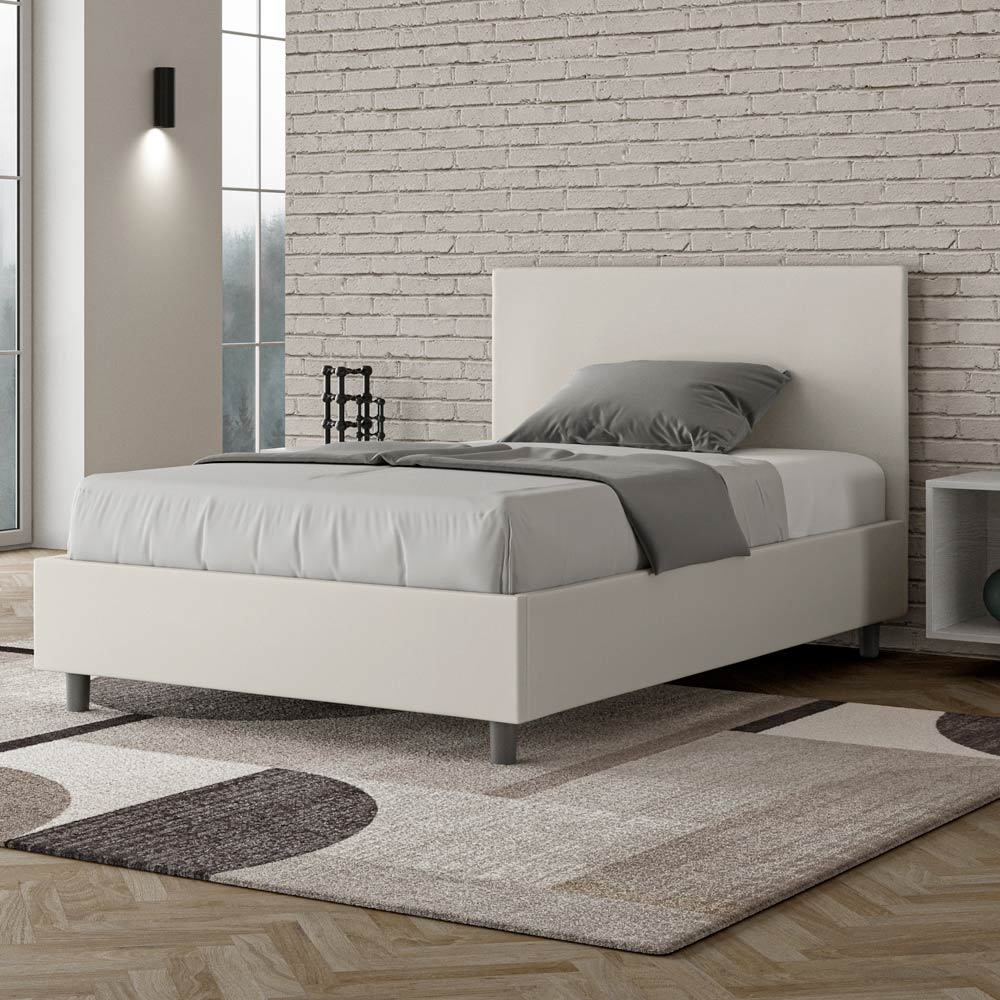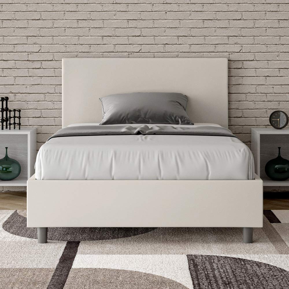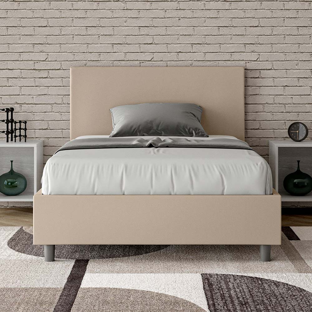 Gepolstertes Queensize-Bett (120 x 200 cm) aus Spanplatten , bezogen mit Kunstleder , vollständig in Italien hergestellt. Dieses Queensize-Bett mit gepolstertem Bettrahmen ist ein Inbegriff von schlichter Eleganz. Das Kopfteil aus Kunstleder fügt sich harmonisch in jedes Zimmer ein und verleiht ihm einen Hauch von Klasse und Luxus – typisch italienisch. Die Pflege ist kinderleicht: Einfach mit einem Mikrofasertuch abwischen, um die Schönheit des Bettes dauerhaft zu erhalten.