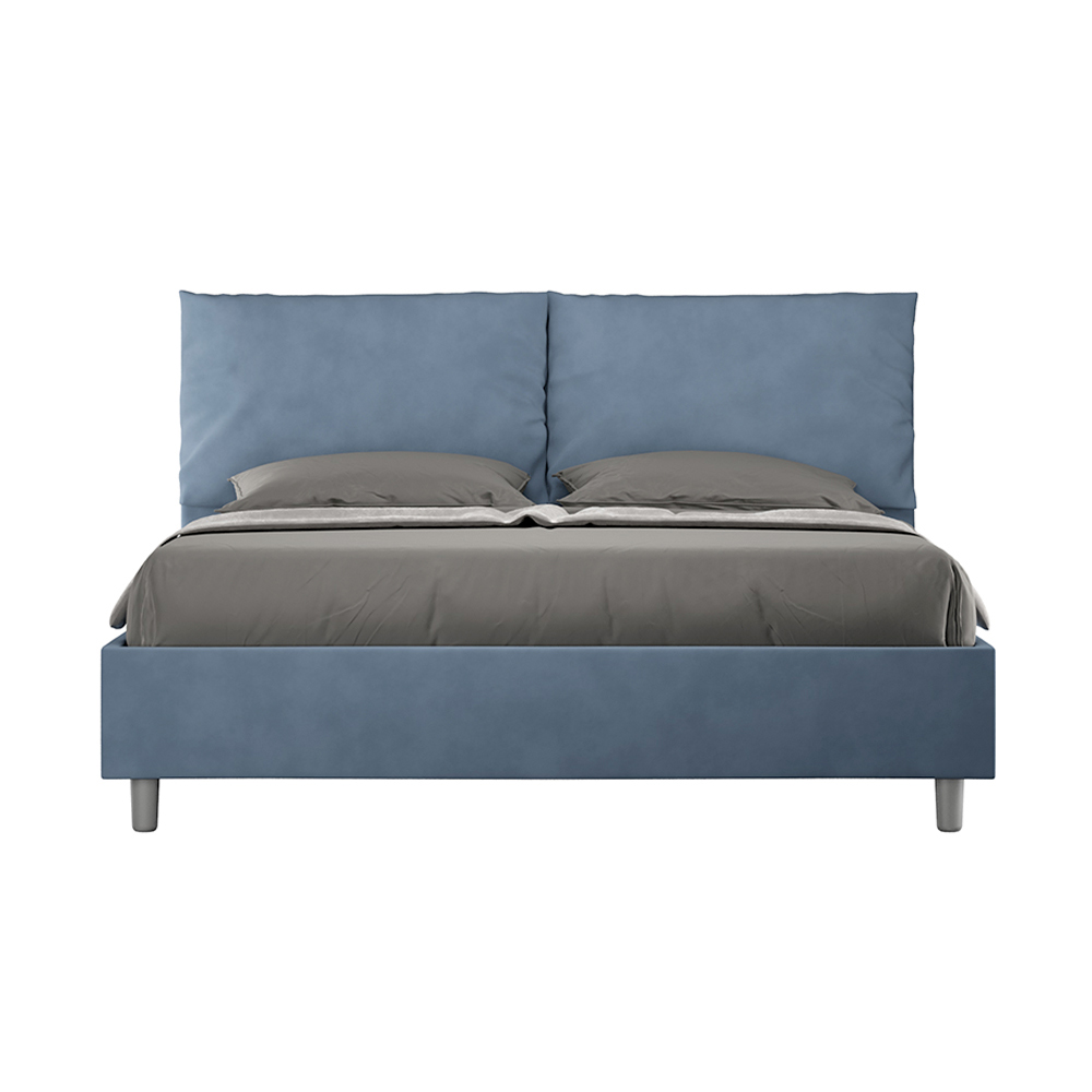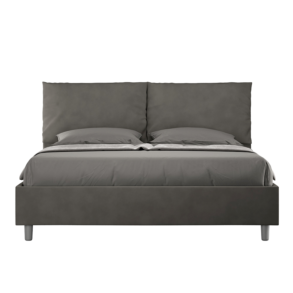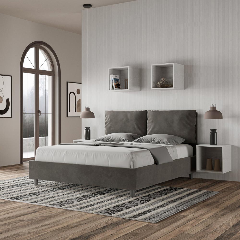 Gepolstertes Doppelbett (160 x 200 cm) aus Spanplatten mit Mikrofaserbezug , vollständig Made in Italy. Dieses Doppelbett mit gepolstertem Bettgestell vereint die Vorteile eines Polsterbetts: Komfort, modernes Design, Funktionalität und optimale Raumnutzung . Das Bett mit seinem breiten, gepolsterten Kopfteil bietet eine gemütliche Leseecke oder einen bequemen Fernsehplatz und wertet Ihr Schlafzimmer auf. Elegant und stilvoll, ist dieses Bett mit Mikrofaser bezogen und lässt sich daher schnell und einfach reinigen: Wischen Sie es einfach mit einem Mikrofasertuch ab, um es strahlend sauber zu halten.