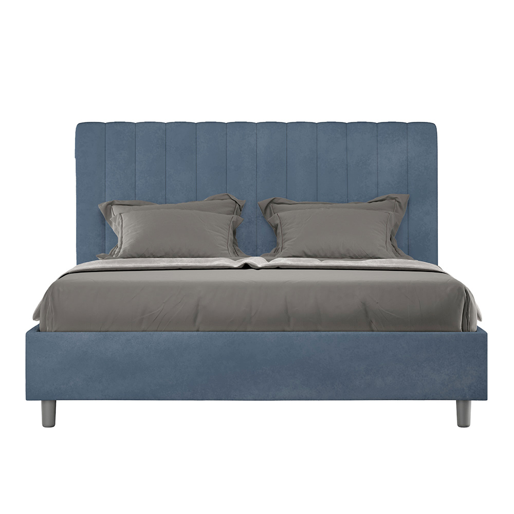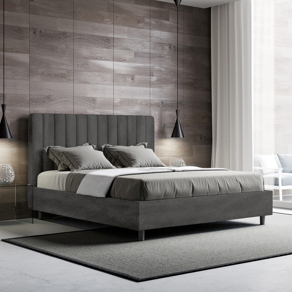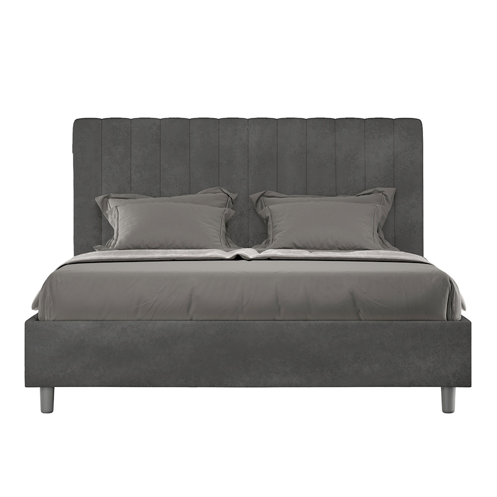 Gepolstertes Doppelbett (160 x 200 cm) aus Spanplatten mit Mikrofaserbezug , vollständig Made in Italy. Dieses Doppelbett mit gepolstertem Rahmen ist ideal für alle, die ein stilvolles Möbelstück suchen, ohne dabei zu aufdringlich zu wirken. Das minimalistische Kopfteil mit seiner dezenten Steppung aus symmetrischen, vertikalen Linien fügt sich harmonisch in jedes Ambiente ein, ob modern oder klassisch.