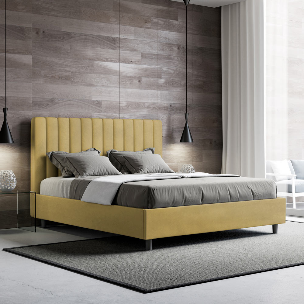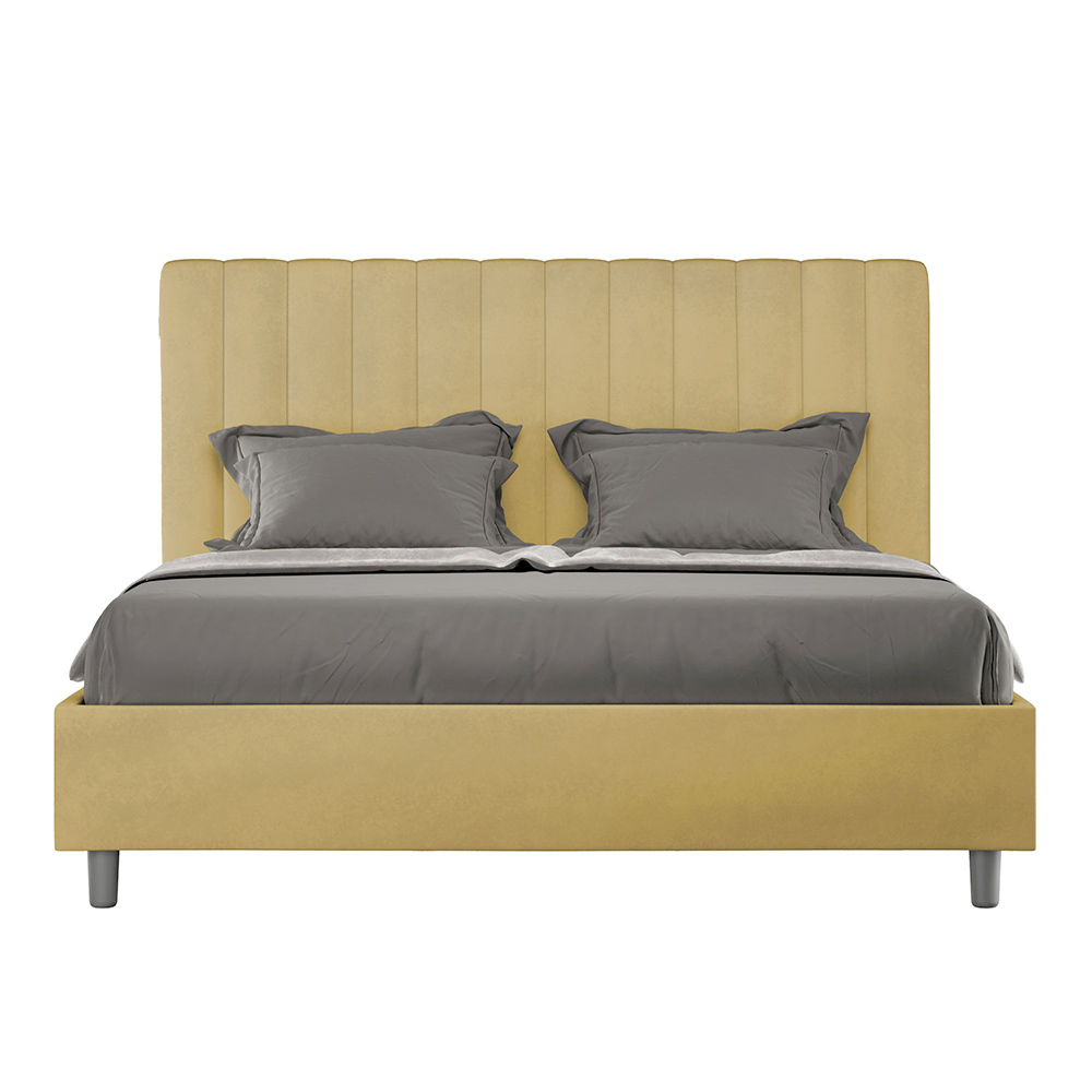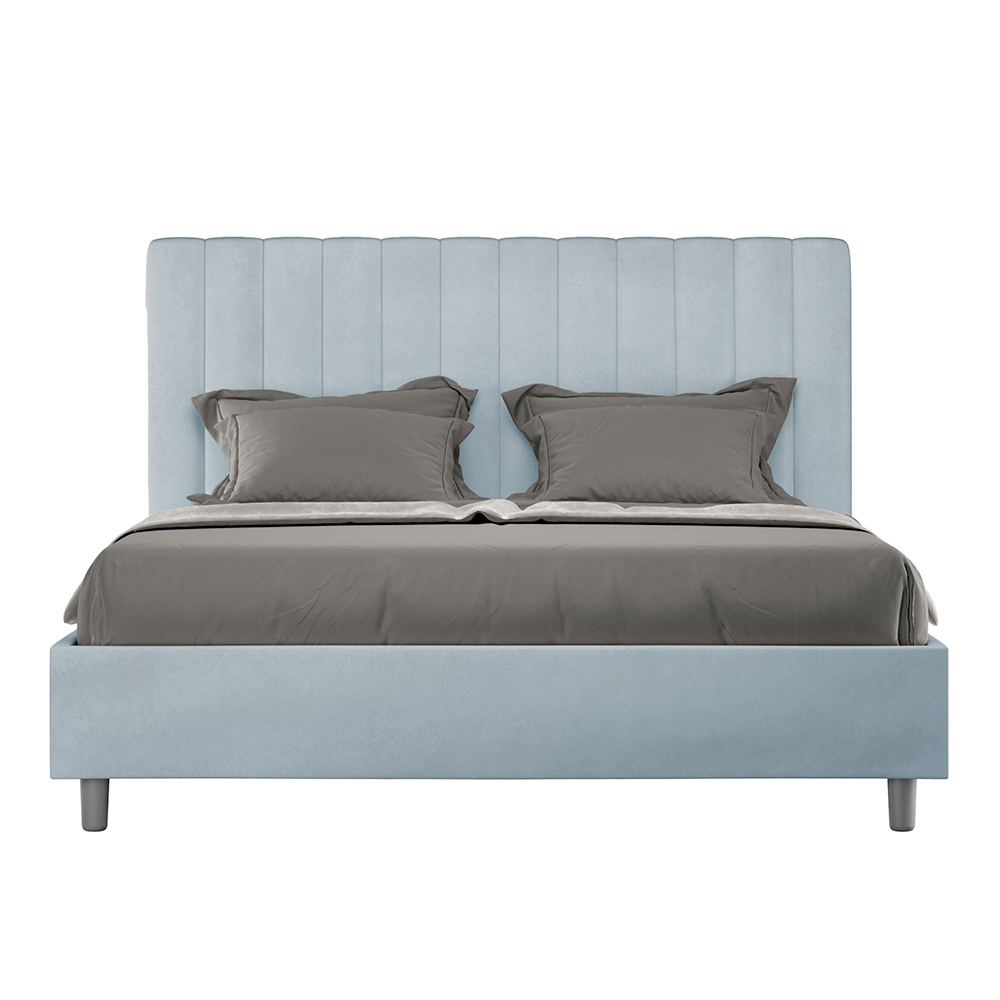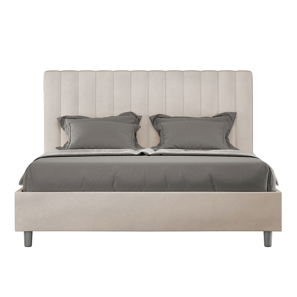 Gepolstertes Doppelbett (160 x 200 cm) aus Spanplatten mit Mikrofaserbezug , vollständig Made in Italy. Dieses Doppelbett mit gepolstertem Rahmen ist ideal für alle, die ein stilvolles Möbelstück suchen, ohne dabei zu aufdringlich zu wirken. Das minimalistische Kopfteil mit seiner dezenten Steppung aus symmetrischen, vertikalen Linien fügt sich harmonisch in jedes Ambiente ein, ob modern oder klassisch.