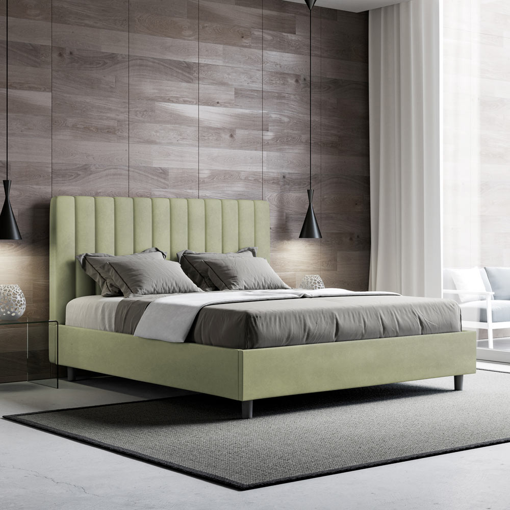 Doppelbett (160 x 200 cm), gepolstert und mit Mikrofaser bezogen, hergestellt in Italien