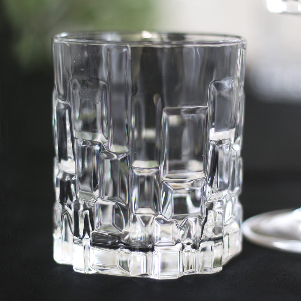 Die Gläser im modernen und raffinierten Stil zeichnen sich durch ein originelles Netzmuster aus miteinander verbundenen Quadraten aus. Sie eignen sich perfekt, um Ihren Tisch mit einem Hauch von einzigartigem Stil zu verschönern und vereinen Schönheit, Haltbarkeit und Funktionalität .