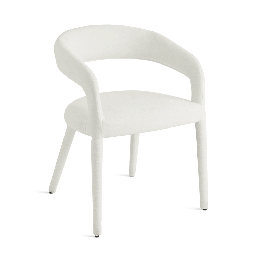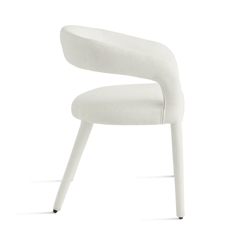 Ein elegantes Set aus zwei Polsterstühlen in schlichtem, modernem Design, ideal für die stilvolle Einrichtung Ihres Esszimmers , Wohnzimmers oder Aufenthaltsraums. Die Stühle sind mit Bouclé-Stoff bezogen, der Sitzfläche und Gestell vollständig bedeckt und so eine harmonische und edle Silhouette schafft.