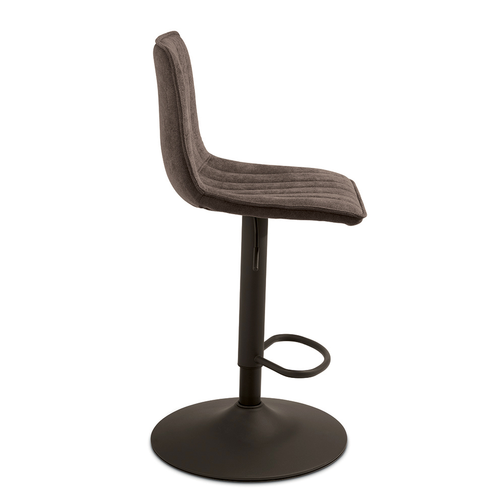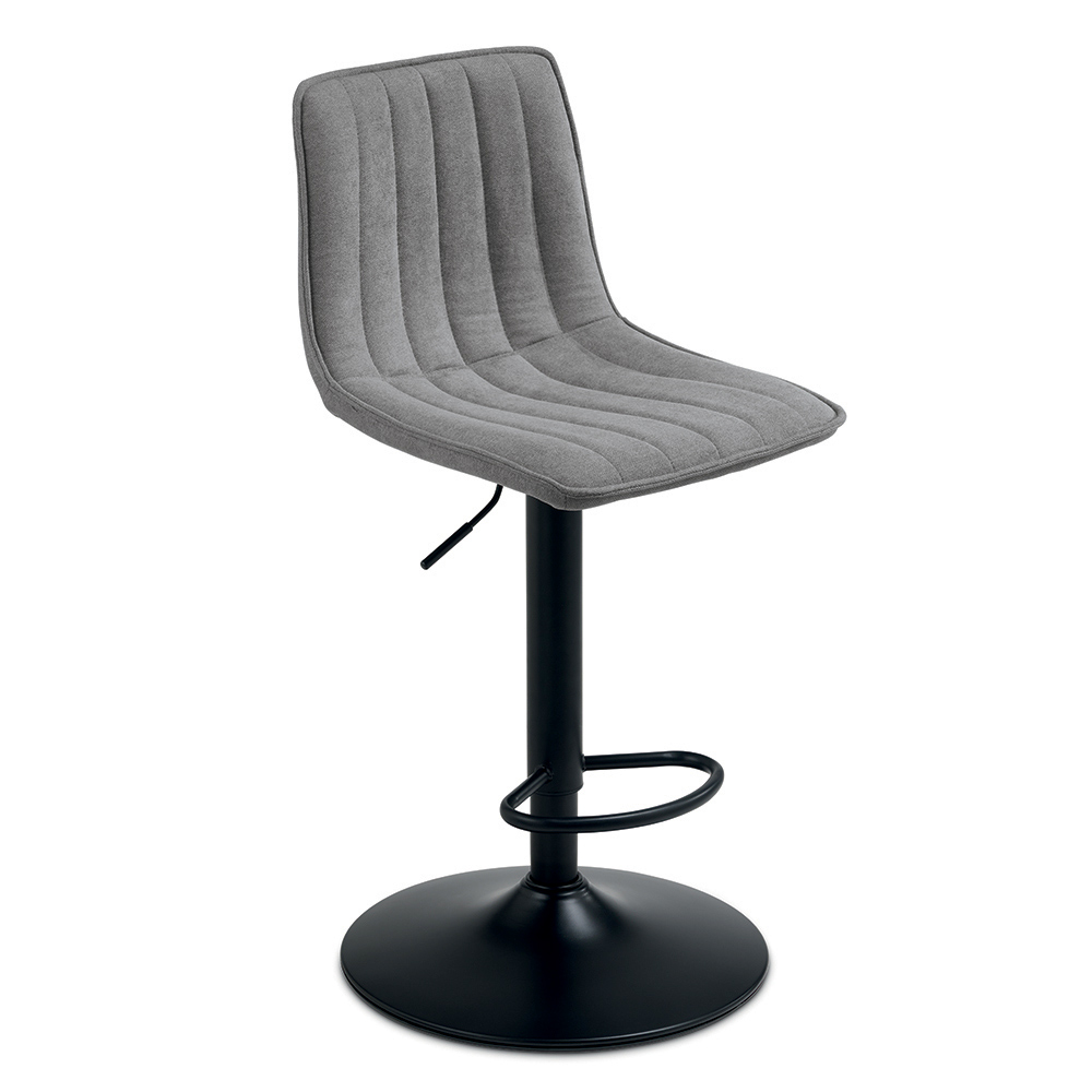 Ein elegantes Set aus zwei Drehhockern im modernen Design, ideal für die stilvolle Einrichtung einer Kücheninsel , einer Frühstücksbar oder moderner Wohnräume. Der gepolsterte Stoffsitz sorgt für Komfort und ein angenehmes Sitzgefühl, während das lackierte Metallgestell Stabilität und Langlebigkeit gewährleistet.