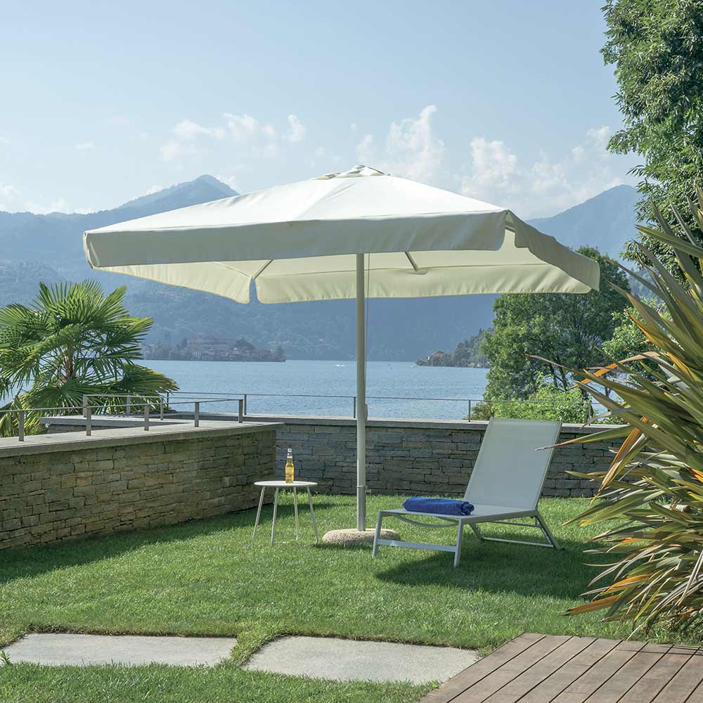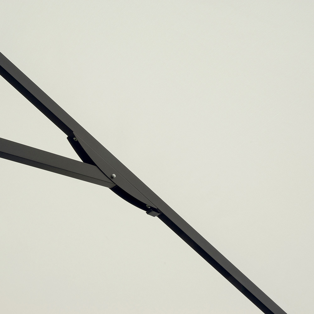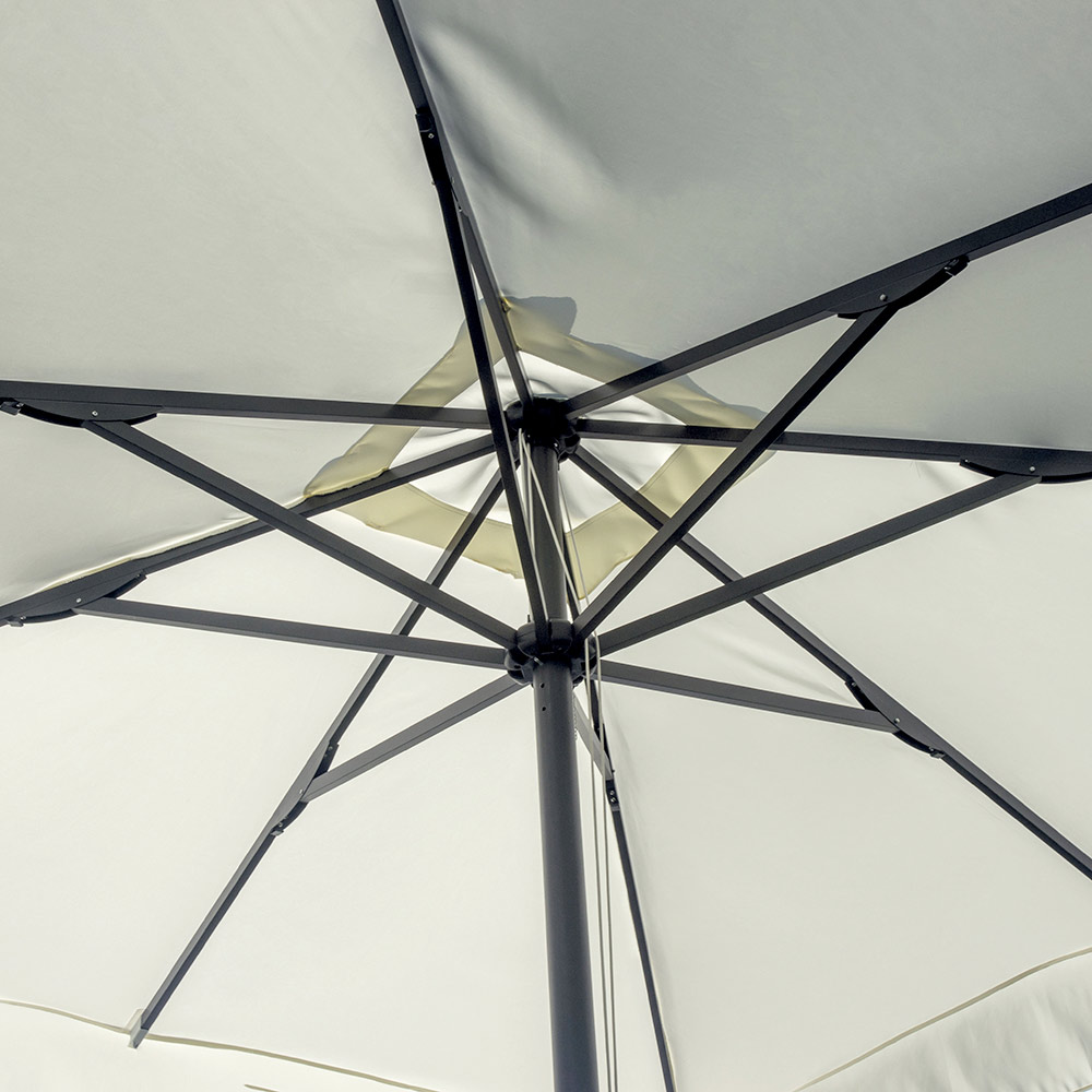Dieser 3 x 3 Meter große Sonnenschirm ist die ideale Lösung für alle, die Stil, Funktionalität und Komfort im Freien vereinen möchten. Das Aluminiumgestell mit einer 58 mm starken Mittelstange und acht robusten 18 x 28 mm Streben garantiert Stabilität und Langlebigkeit und besticht gleichzeitig durch ein elegantes und modernes Design.