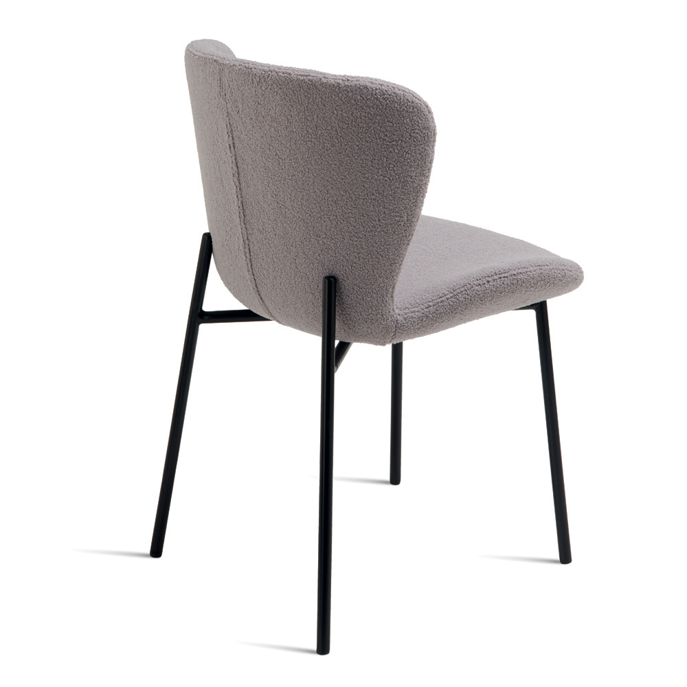 Ein elegantes Set aus vier gepolsterten Stühlen in modernem Design, ideal für die stilvolle Einrichtung von Esszimmer , Wohnzimmer oder anderen Räumen, die zum geselligen Beisammensein einladen. Der weiche, strukturierte Bouclé- Stoffbezug verleiht den Stühlen eine edle und einladende Optik und setzt einen modernen Akzent im Raum.