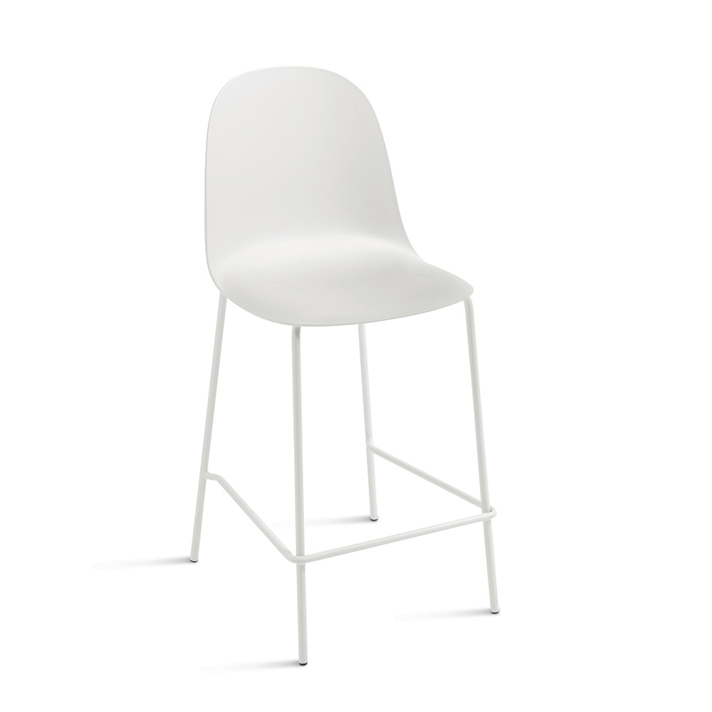 Set aus 4 modernen Hockern mit Sitzfläche aus Polypropylen und lackiertem Metallgestell