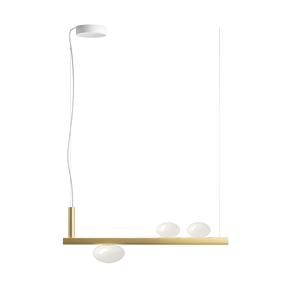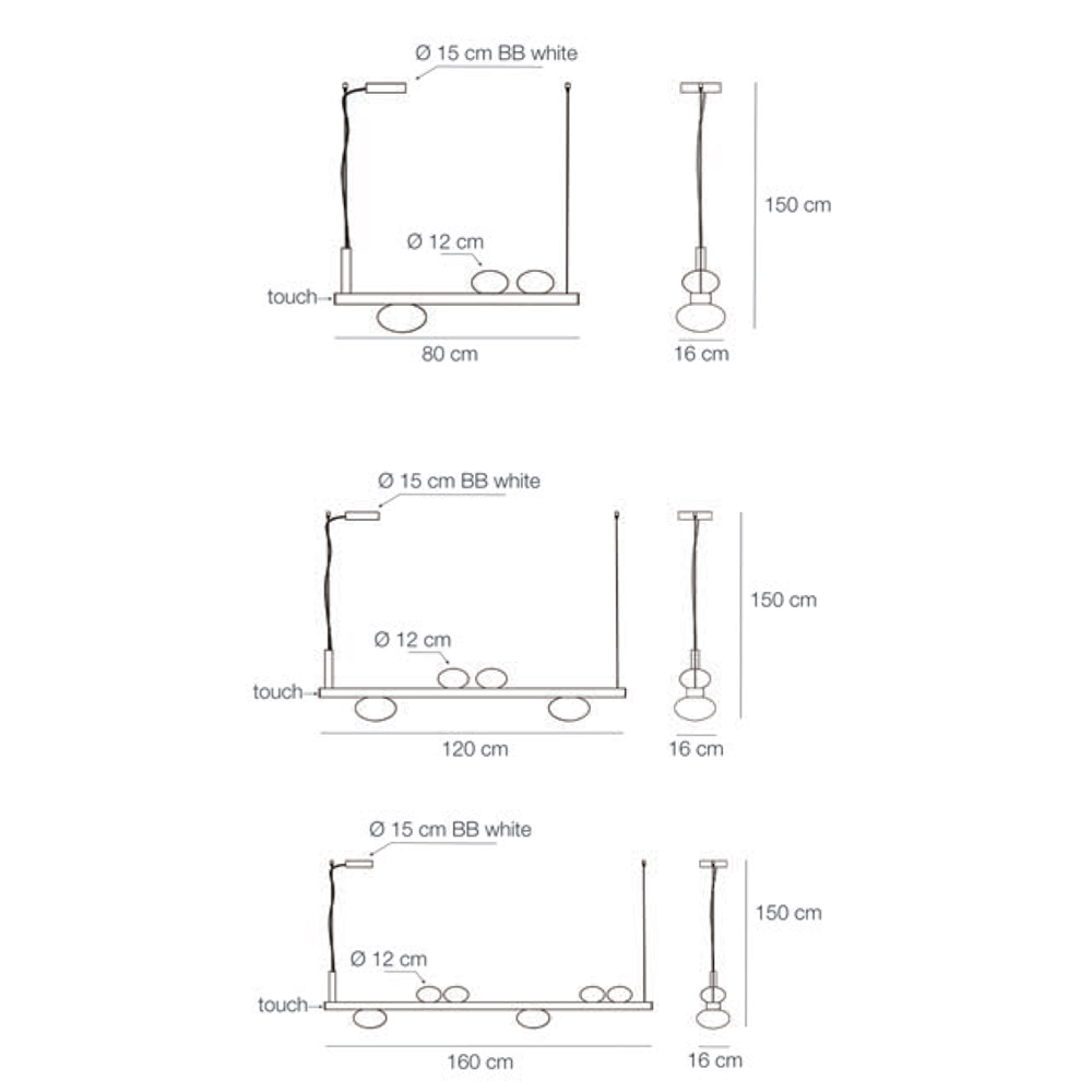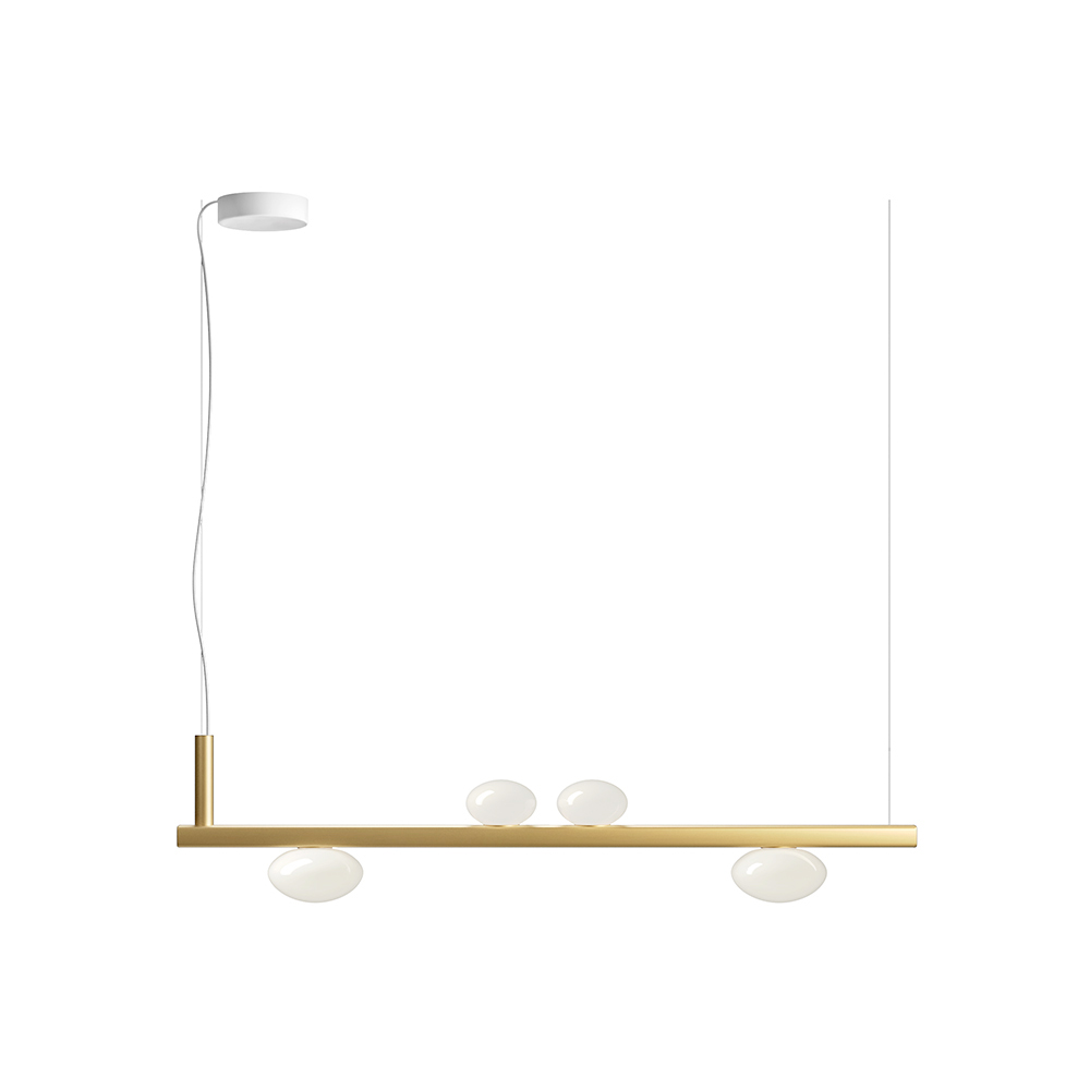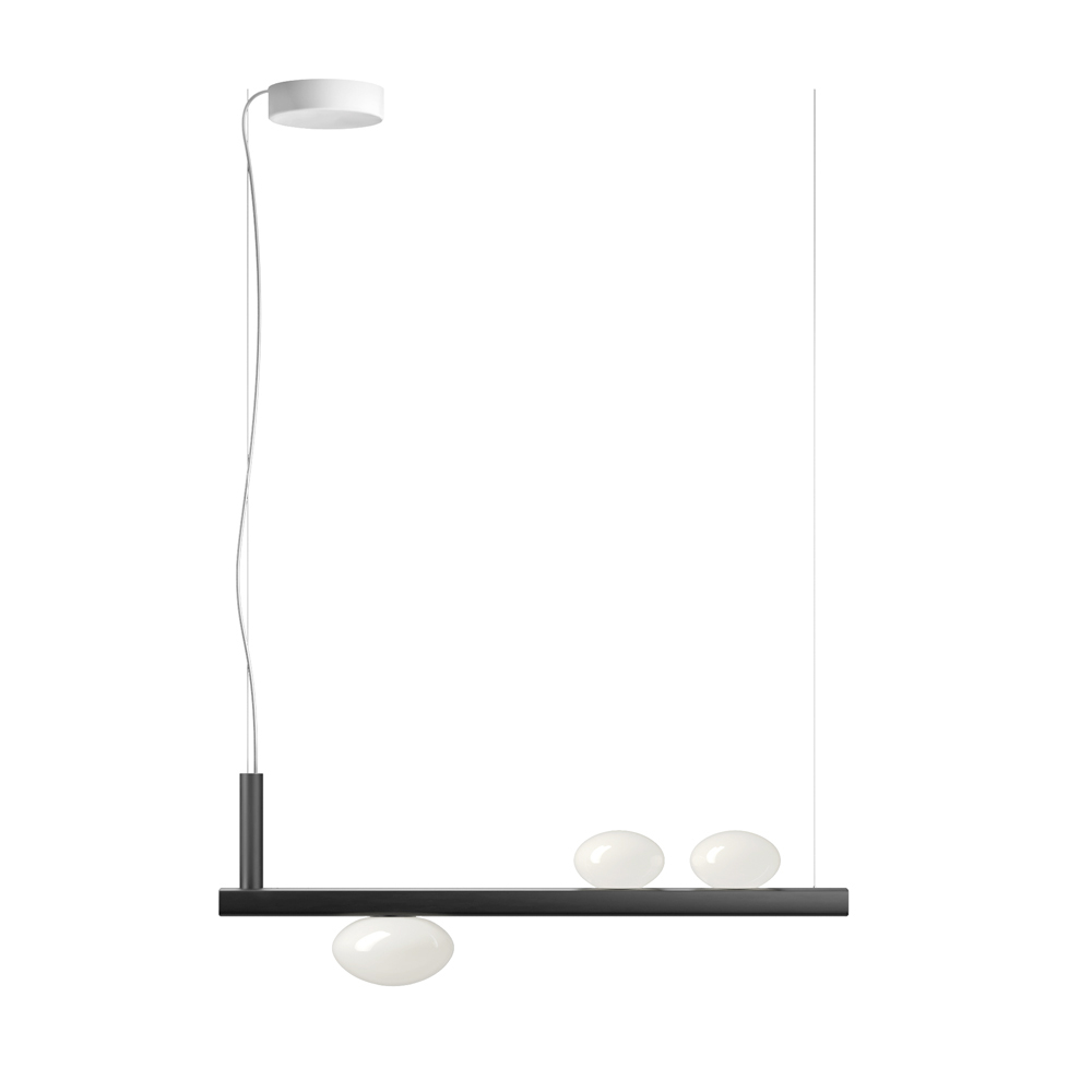 Diese Pendelleuchte ist eine wahre Ikone intelligenten Designs und diskreter Technologie . Ihre klare, lineare Struktur wird durch elegante, kugelförmige Diffusoren aus Opalglas ergänzt, die scheinbar im Gleichgewicht schweben und so einen modernen und leichten visuellen Effekt erzeugen.