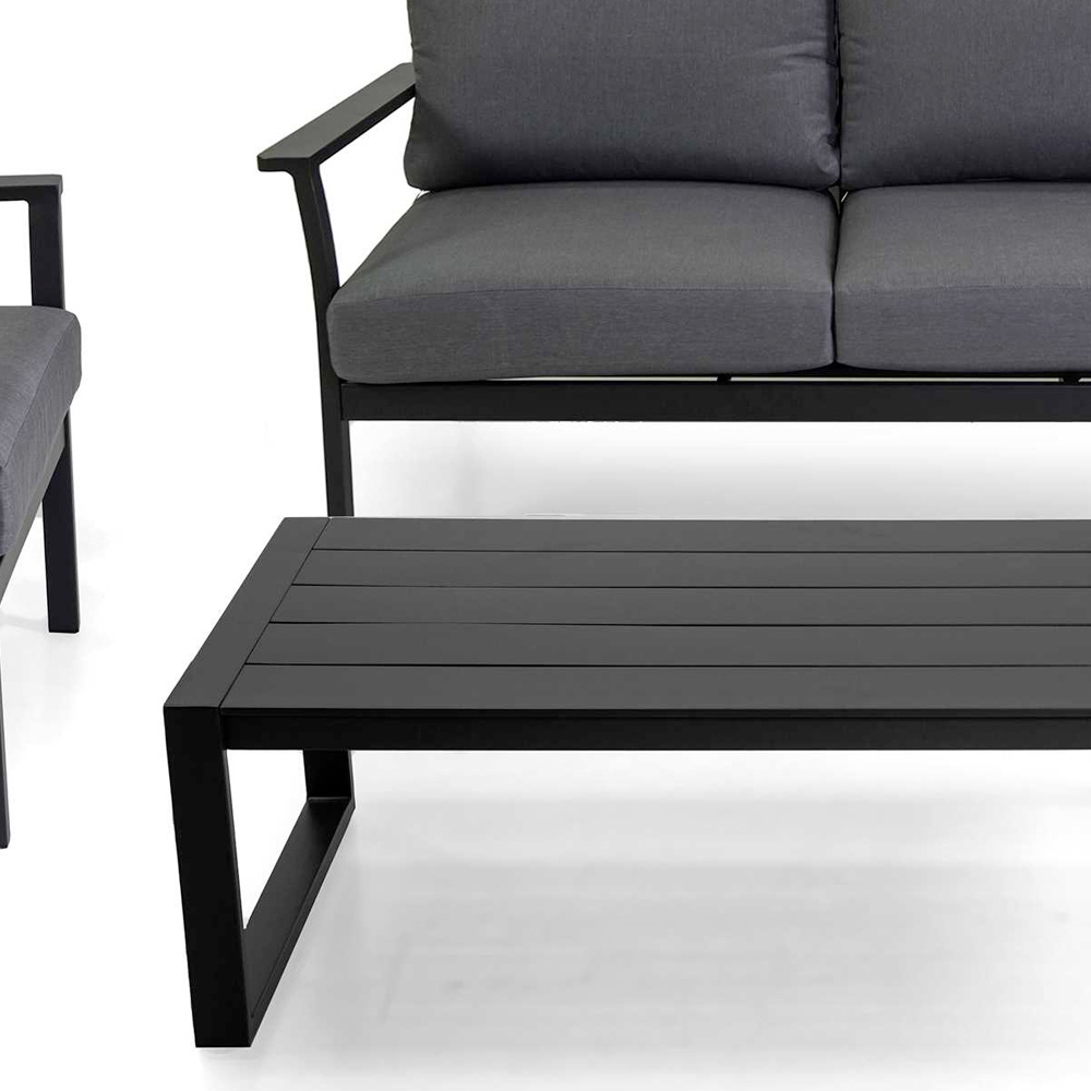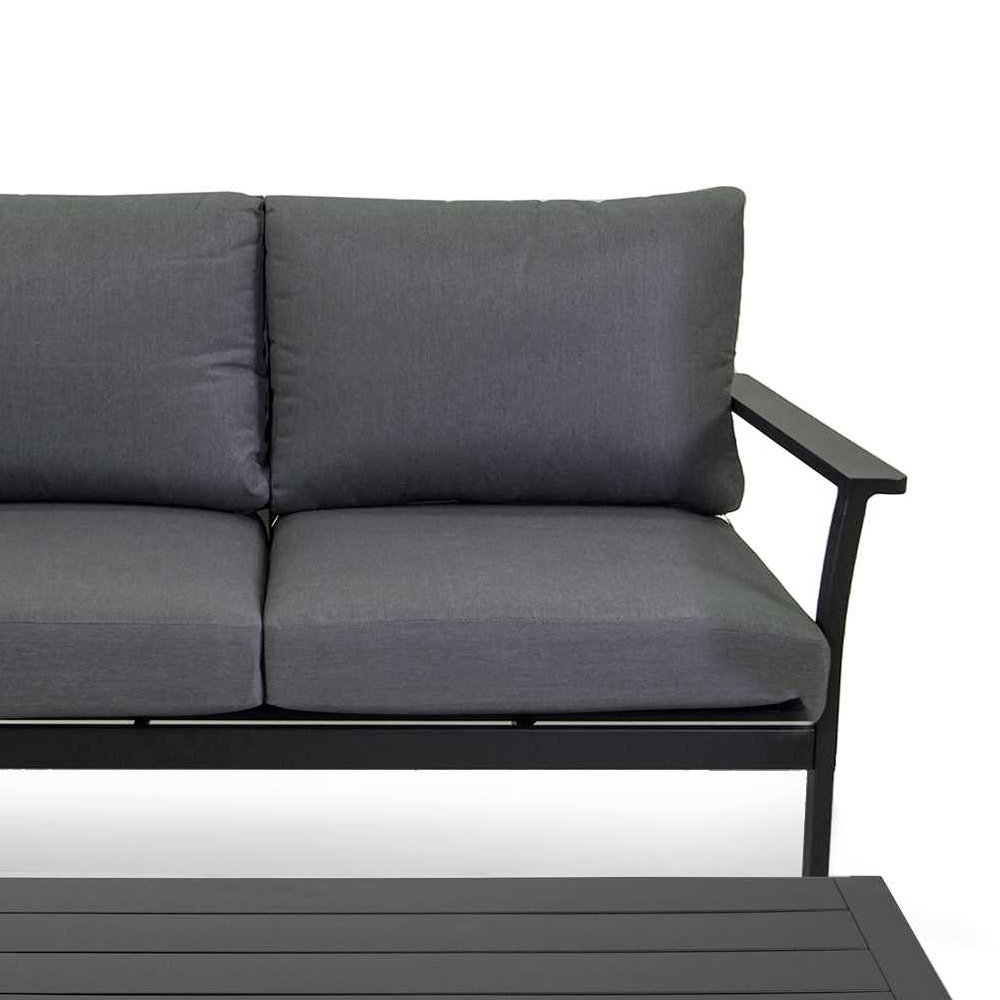 Dieses moderne Gartenlounge-Set ist eine stylische und anspruchsvolle Ergänzung für jeden Außenbereich. Das minimalistische Design mit klaren Linien und der Farbe Anthrazit vermittelt ein Gefühl von zeitgenössischem Stil und dezenter Eleganz.