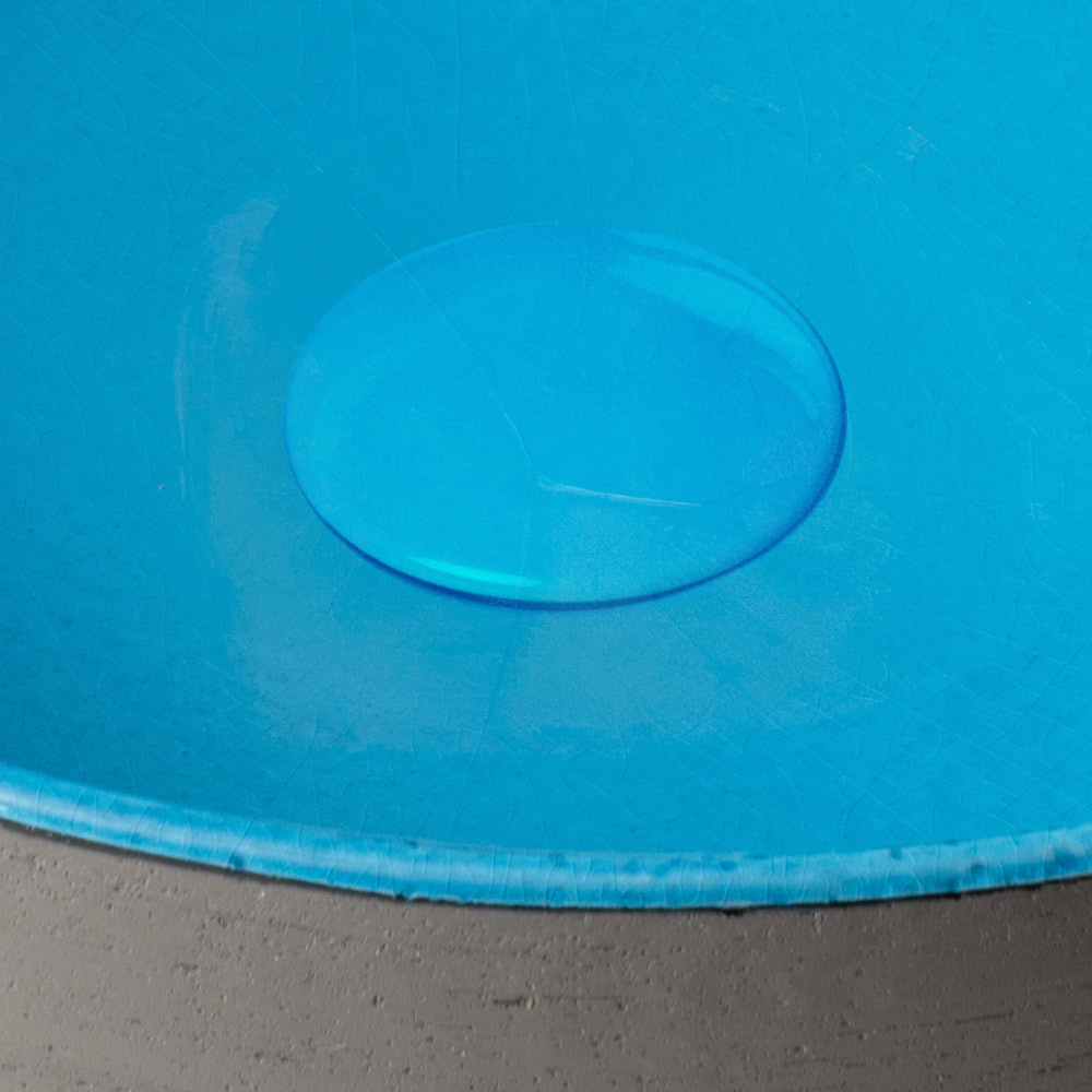 • Innen blau kristallin und außen dunkel Raku -Lackierung