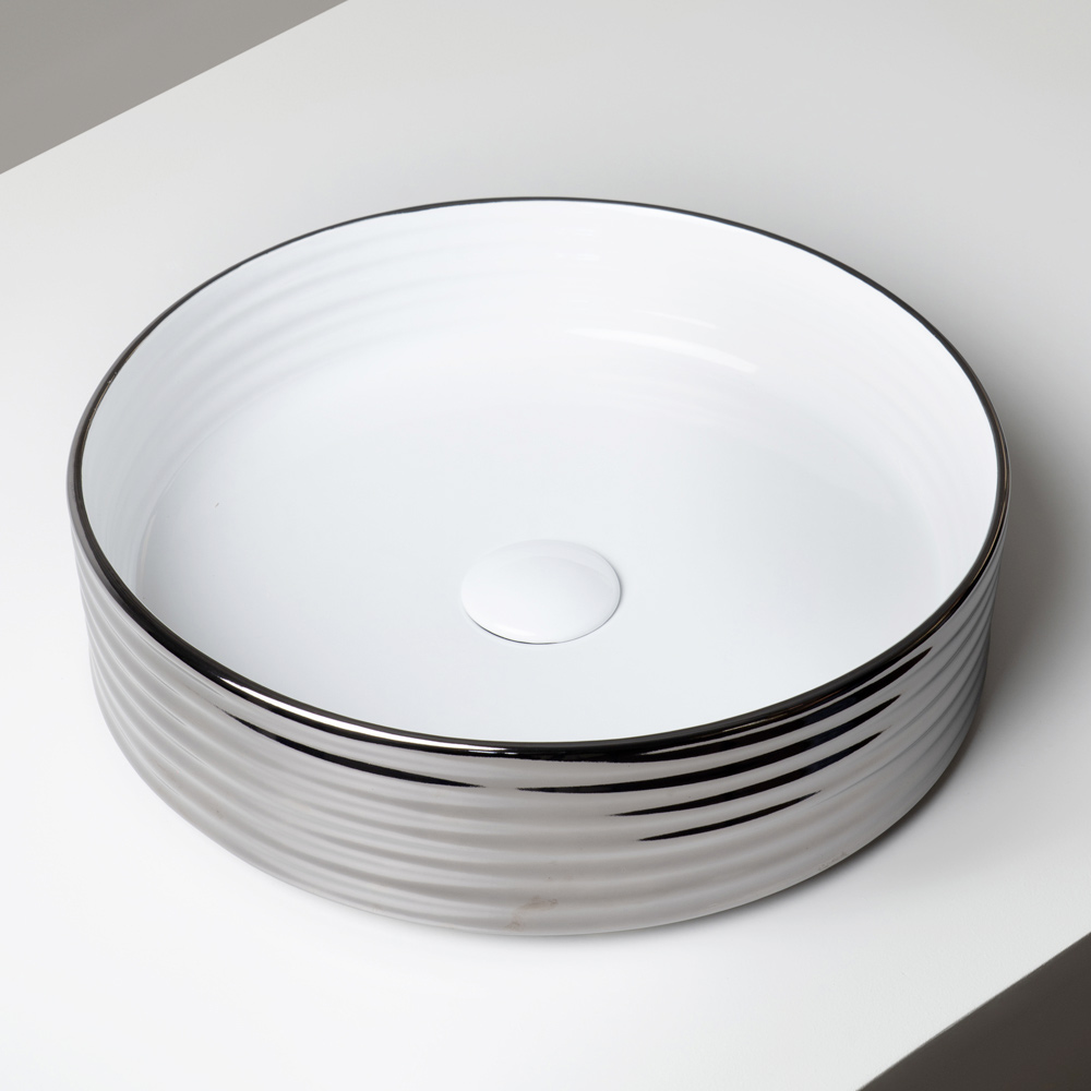 Dieses Waschbecken eignet sich ideal für hochwertige Badezimmer, prestigeträchtige Wohn- und Objektprojekte, bei denen das Design durch edle Materialien und leuchtende Oberflächen im Mittelpunkt steht.