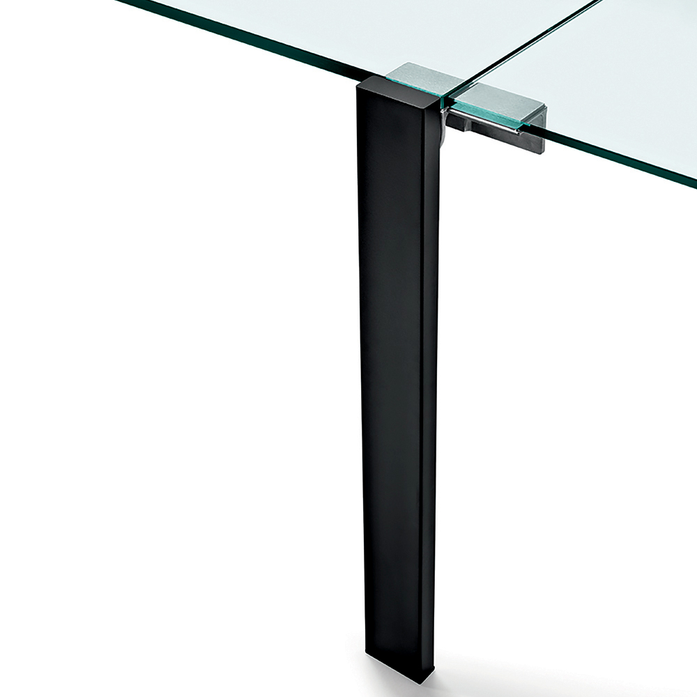 Tisch aus extraklarem Glas, ausziehbar bis 170 cm, mit Metallgestell, hergestellt in Italien.