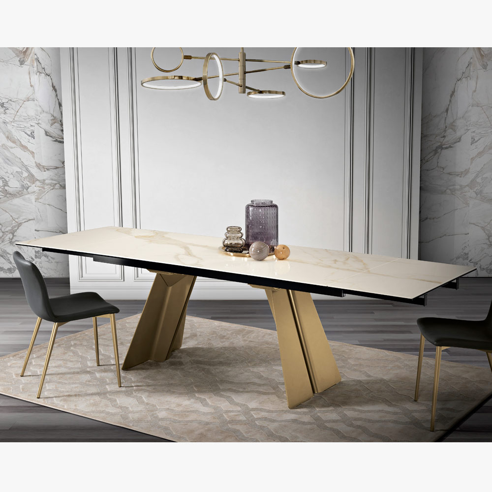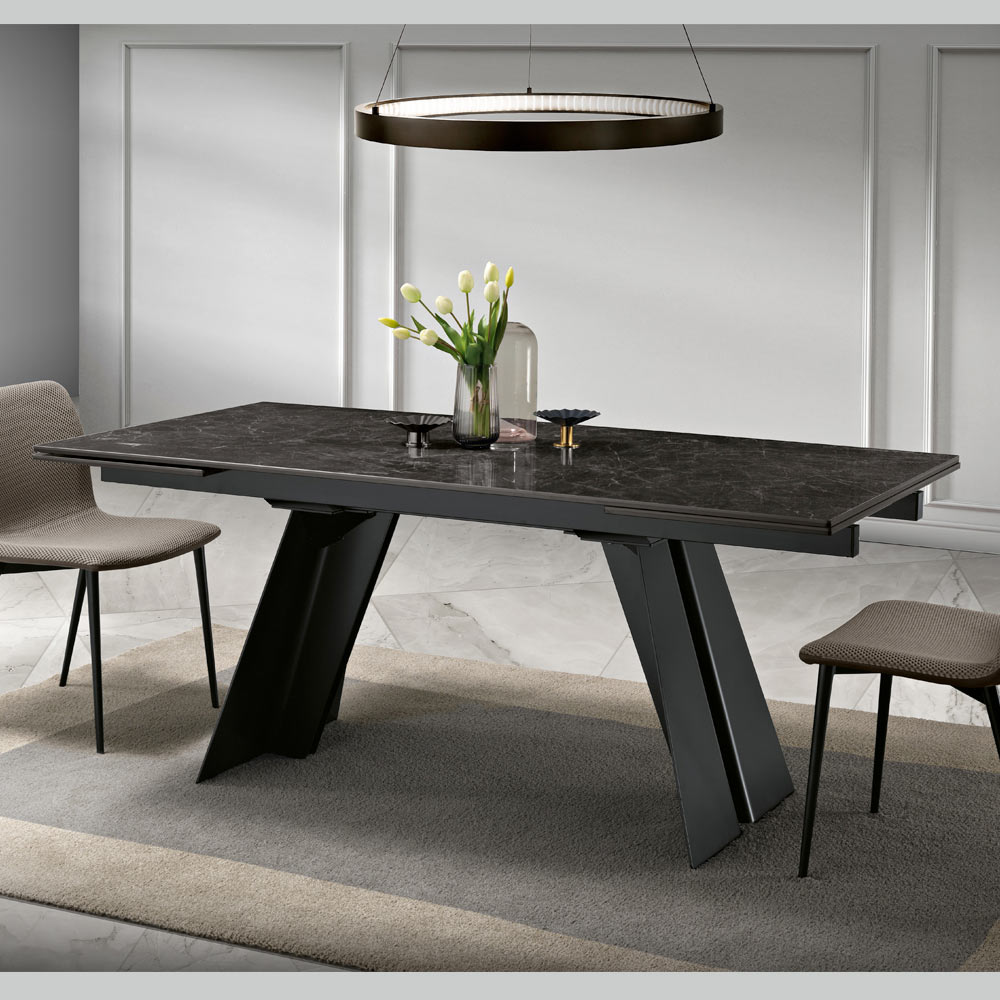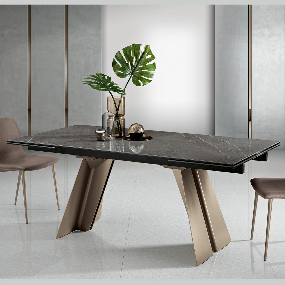 Ausziehbarer Esstisch aus Glaskeramik und Metall Made in Italy
