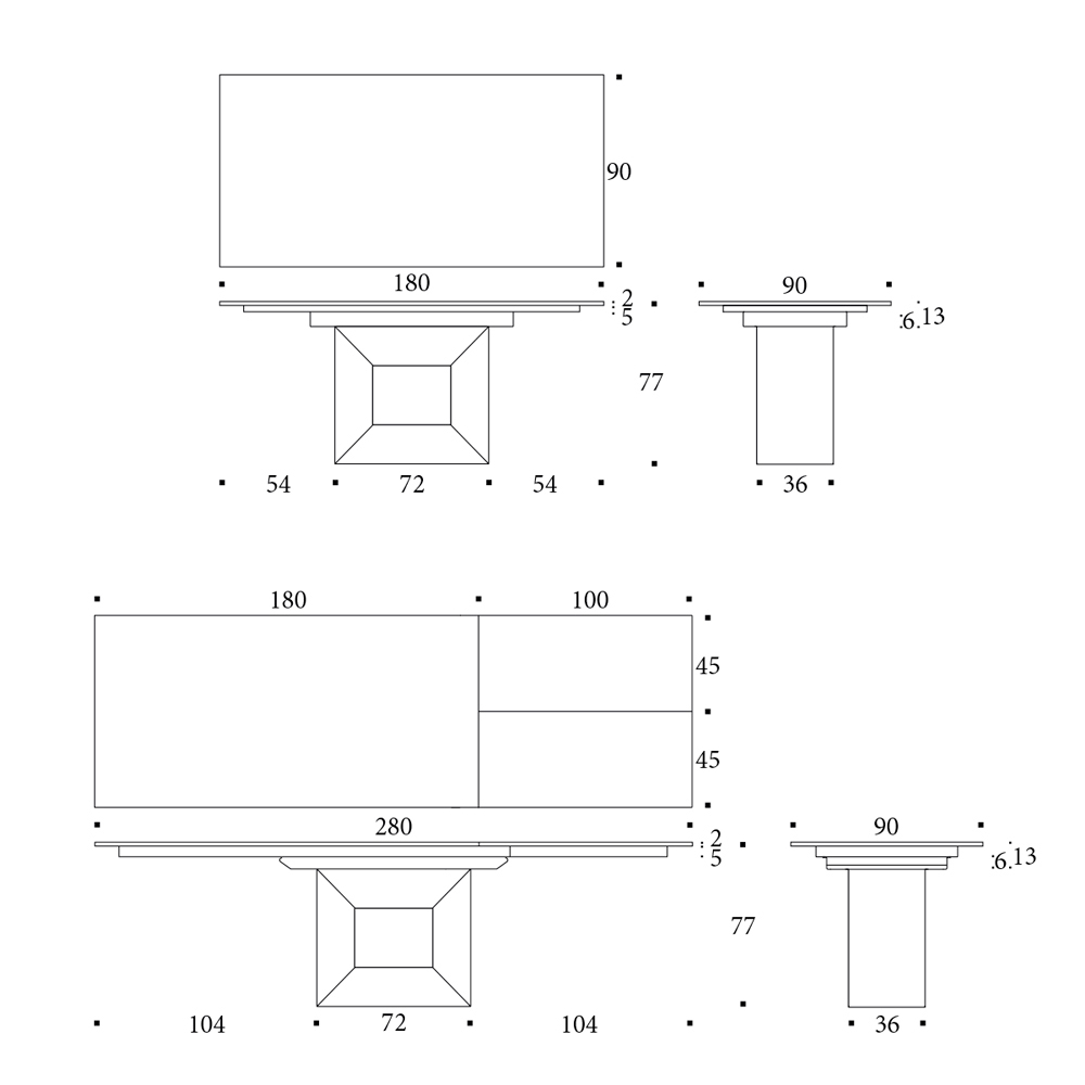 Die Tischplatte ist mit einem Metallrahmen, einem Teleskopmechanismus und synchronisierter Öffnung ausziehbar. Die Ausziehfunktion lässt sich wie ein Buch aufklappen und verläuft dabei nahtlos.