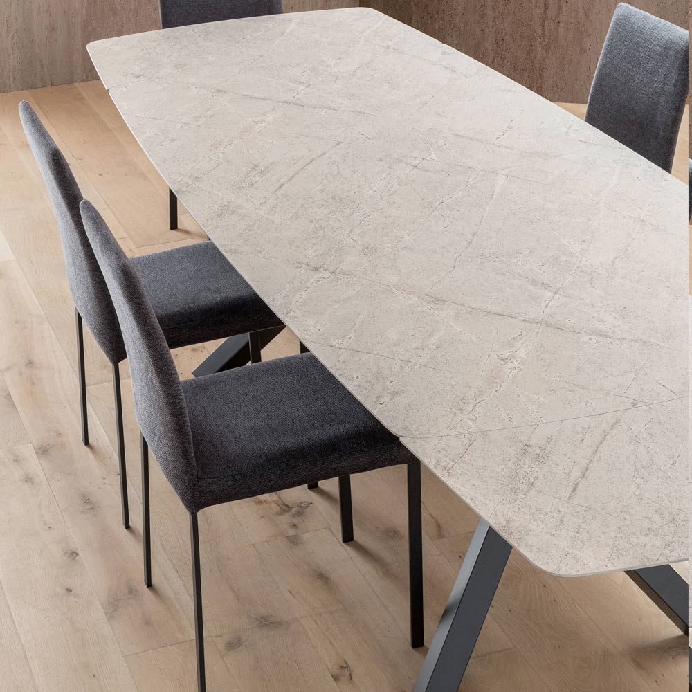 Eleganz und Alltagstauglichkeit vereinen sich in diesem ausziehbaren Tisch aus HPL und Metall , der für alle gedacht ist, die Möbel mit modernem Design und hoher Leistung wünschen.