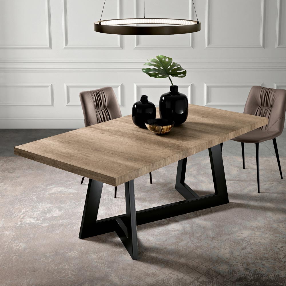 Ausziehbarer Esstisch aus Melamin und Metall Made in Italy