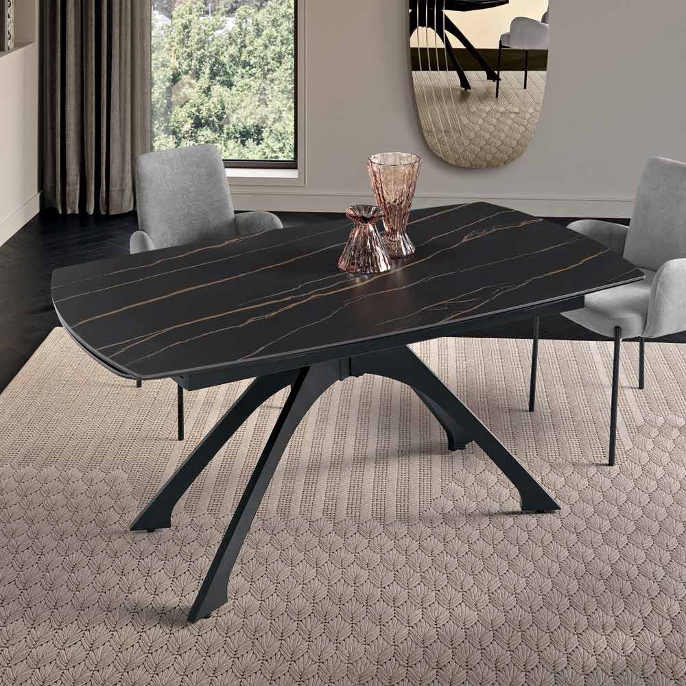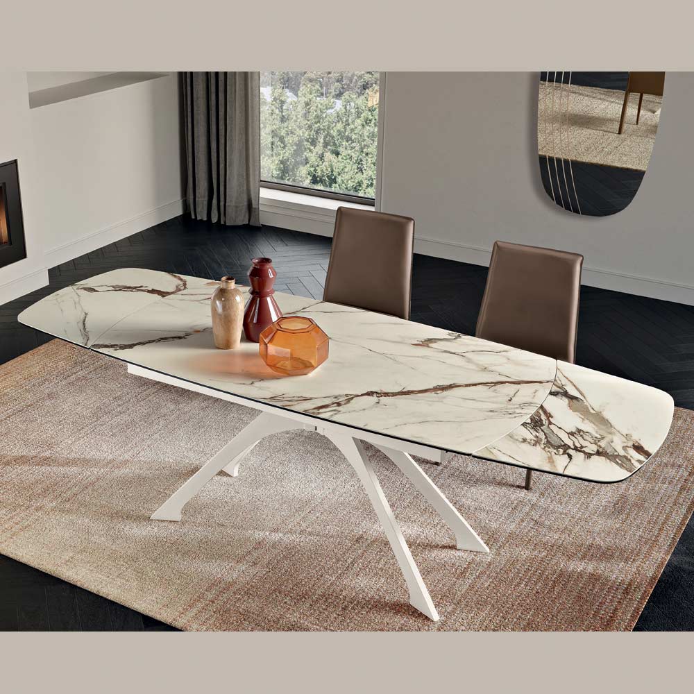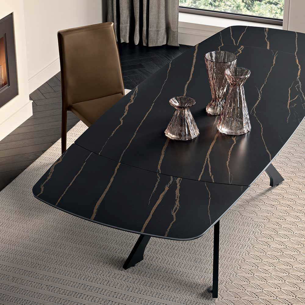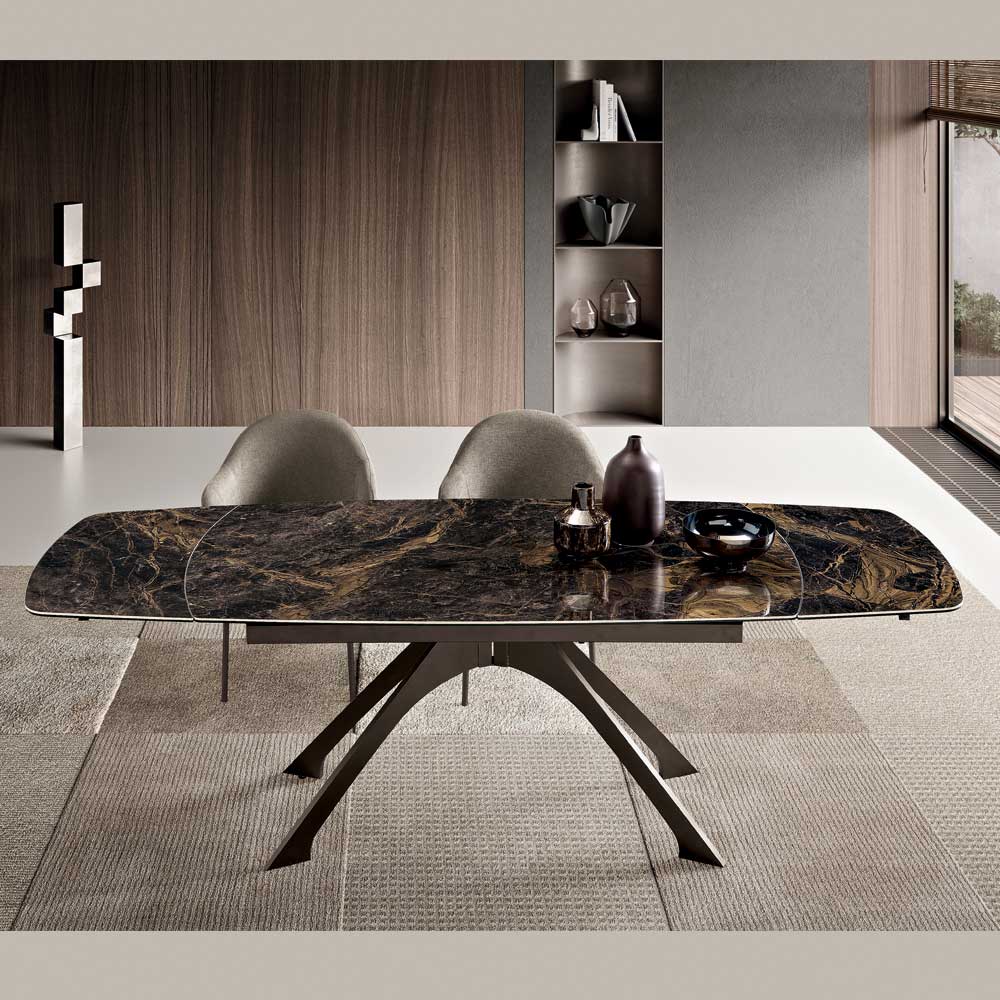 Ausziehbarer Metalltisch mit Tischplatte aus Feinsteinzeug in Marmoroptik - Vittorio