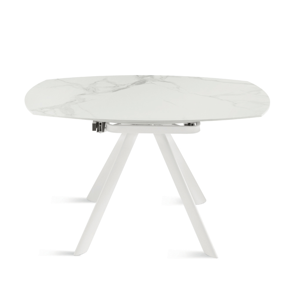 Eleganter , ausziehbarer Esstisch, der Ihr Wohn- oder Esszimmer stilvoll aufwertet. Die Tischplatte aus Sinterstein in Marmoroptik bietet eine strapazierfähige, edle und pflegeleichte Oberfläche – perfekt für den täglichen Gebrauch.