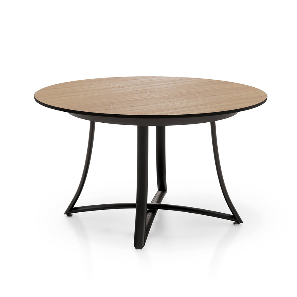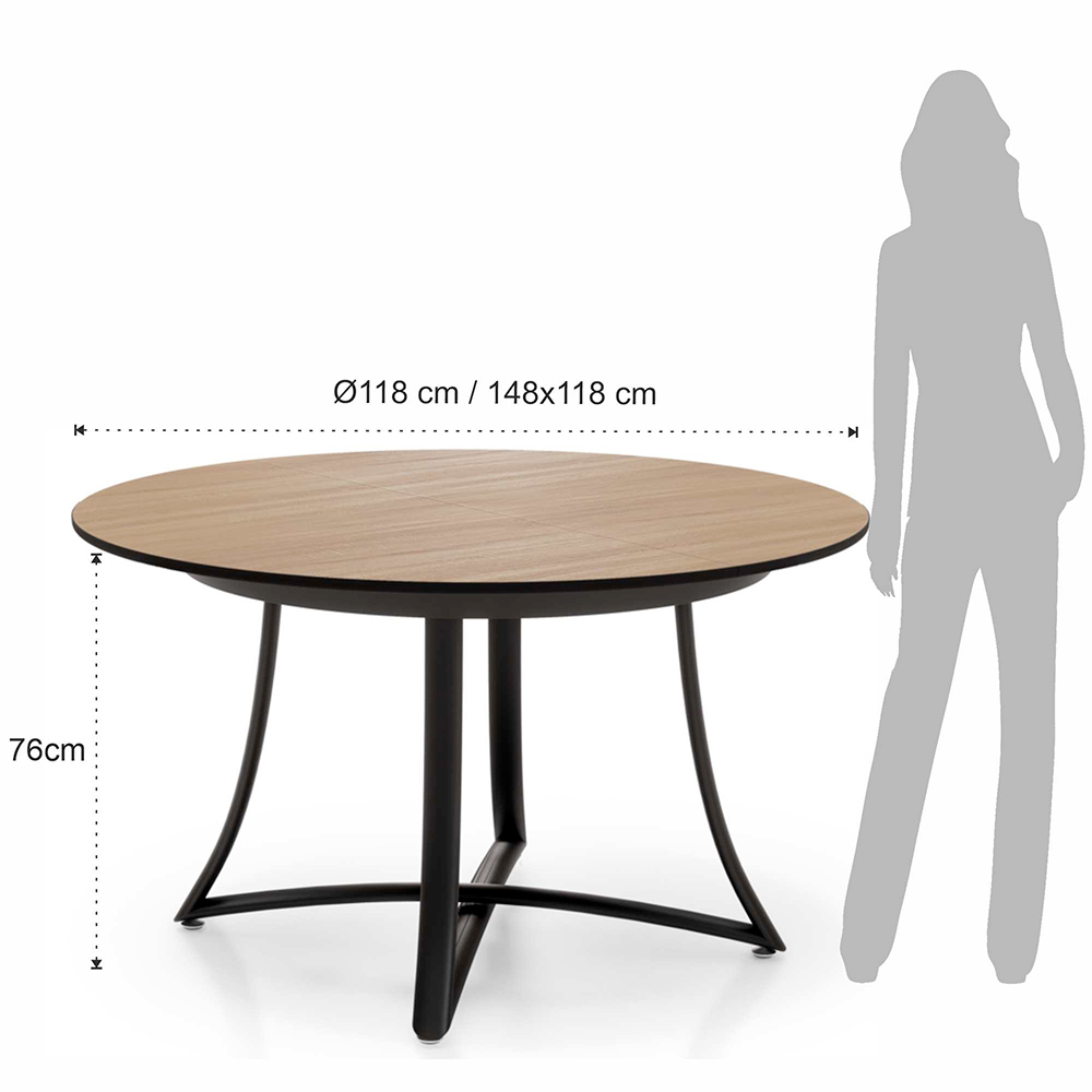 Dieser runde ausziehbare Tisch ist ein perfektes Beispiel für modernes Design , das Funktionalität und Stil vereint. Mit seiner Holzplatte vermittelt dieser Tisch eine warme und einladende Atmosphäre, während das schwarze Metallgestell einen starken optischen Kontrast bietet, der dem Ganzen einen Hauch zeitgenössischer Eleganz verleiht.