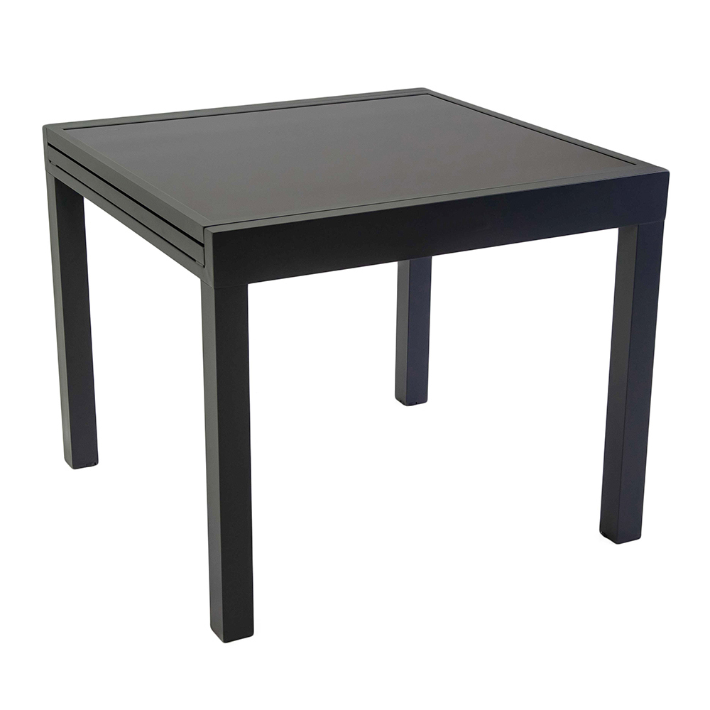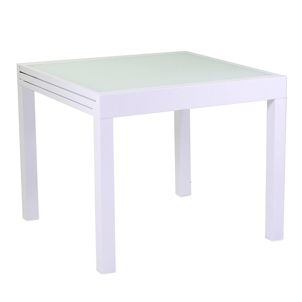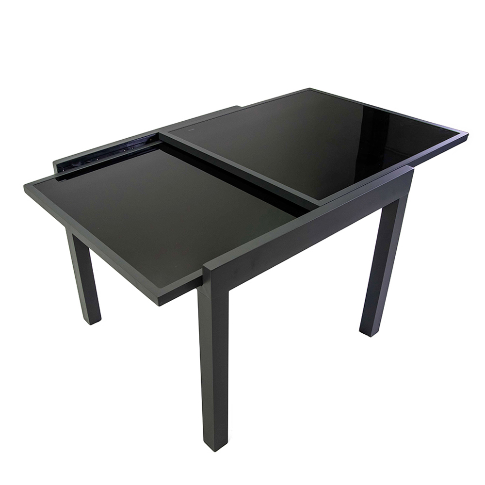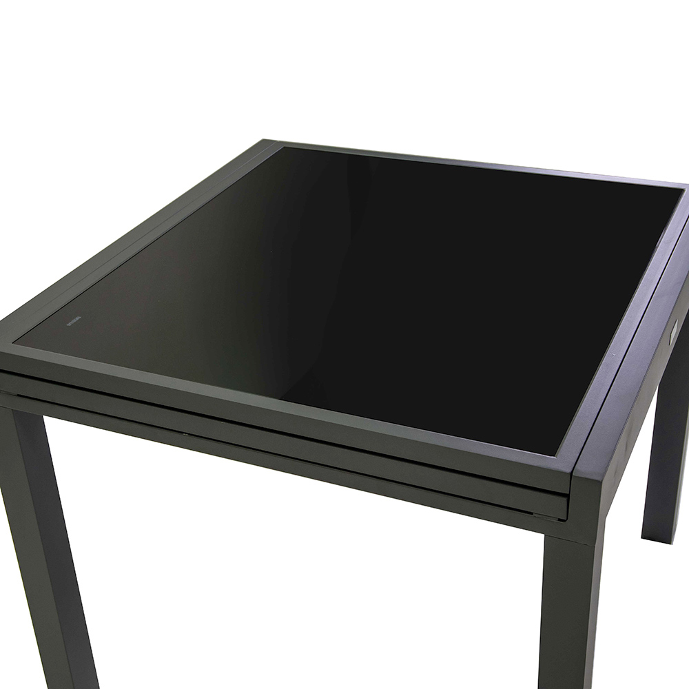 Dieser ausziehbare Aluminiumtisch mit gehärteter Glasplatte ist ideal für diejenigen, die Funktionalität und Stil in einem einzigen Produkt suchen. Dieser elegante und moderne Tisch besticht durch sein Finish, das sich perfekt an Innen- und Außenbereiche anpasst.