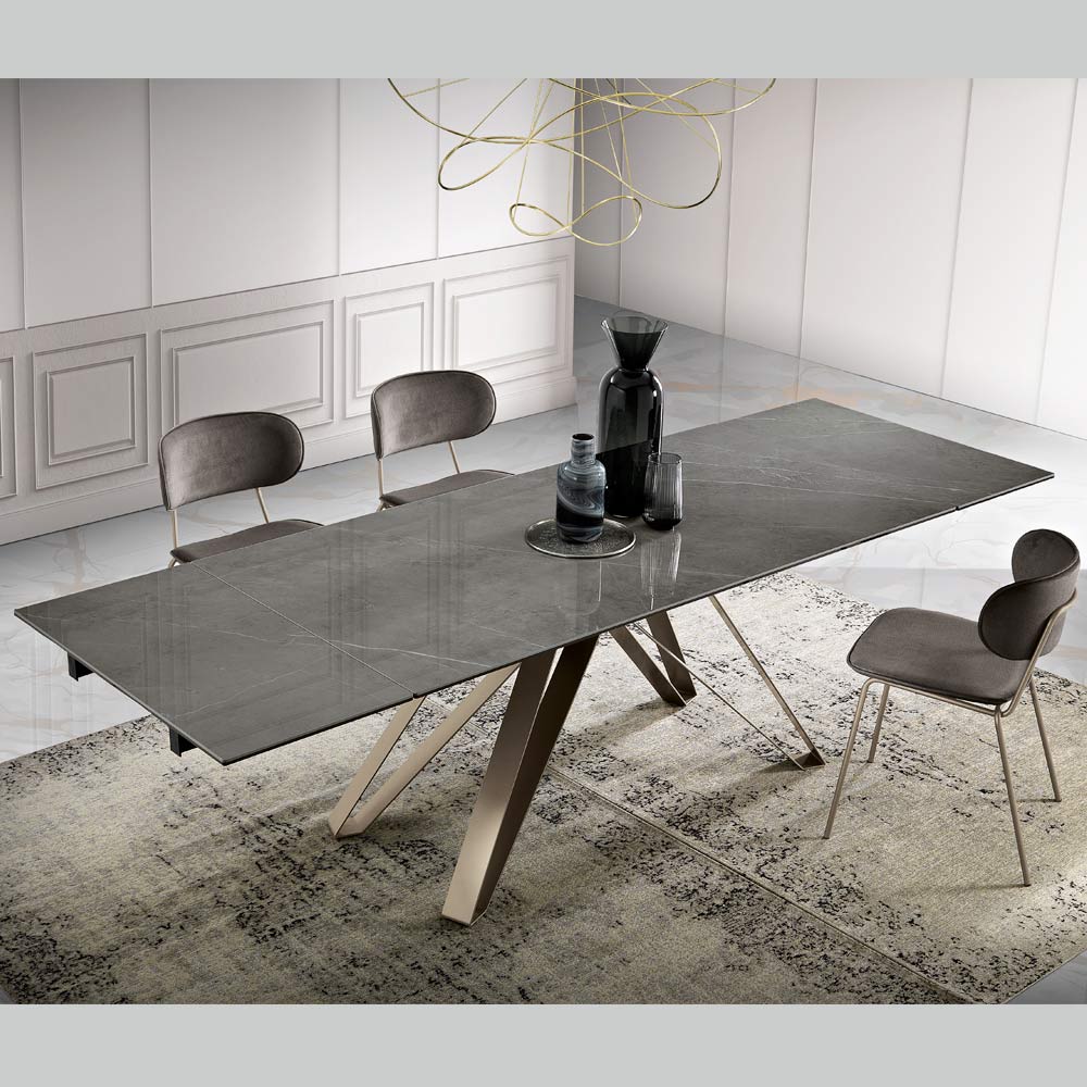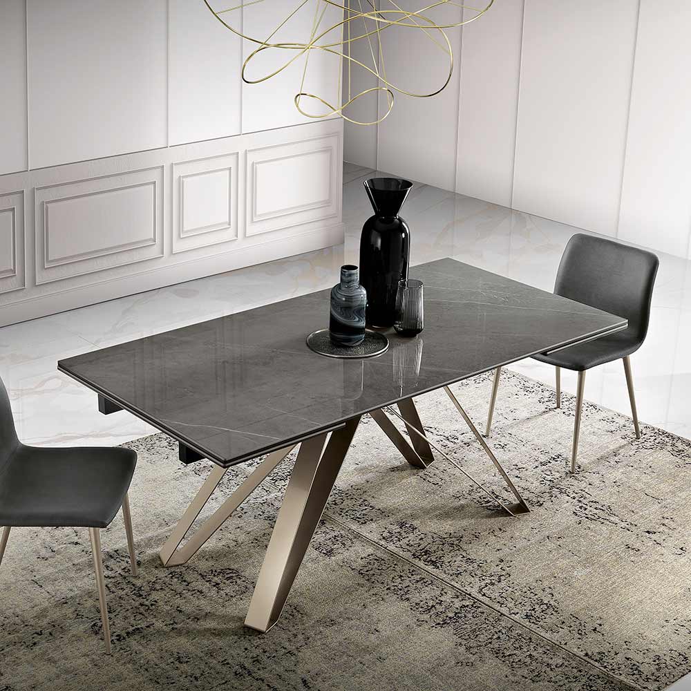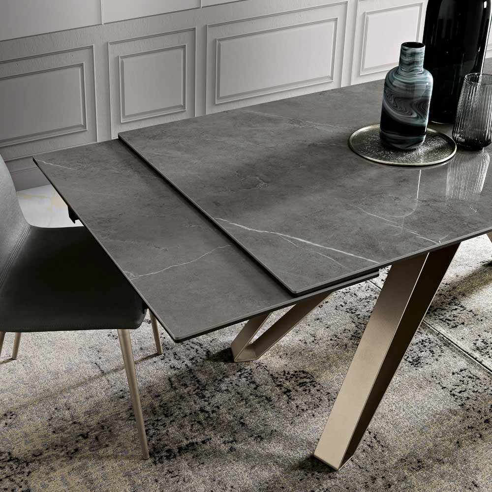 Ausziehbarer Esstisch aus Glaskeramik und Metall Made in Italy