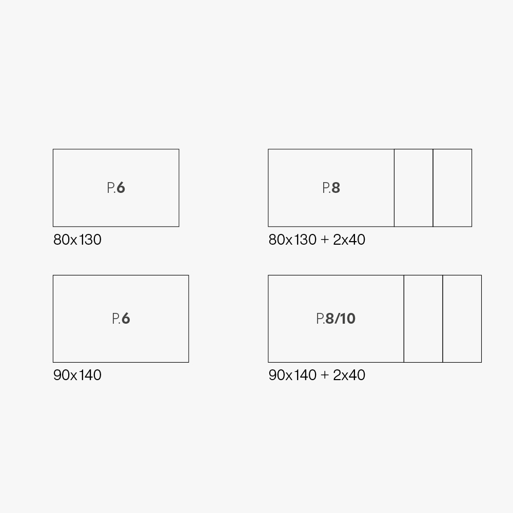 Verfügbare Größen:- Länge 130/210 cm x Tiefe 80 cm x Höhe 75,5 cm - 2 Verlängerungen von 40 cm