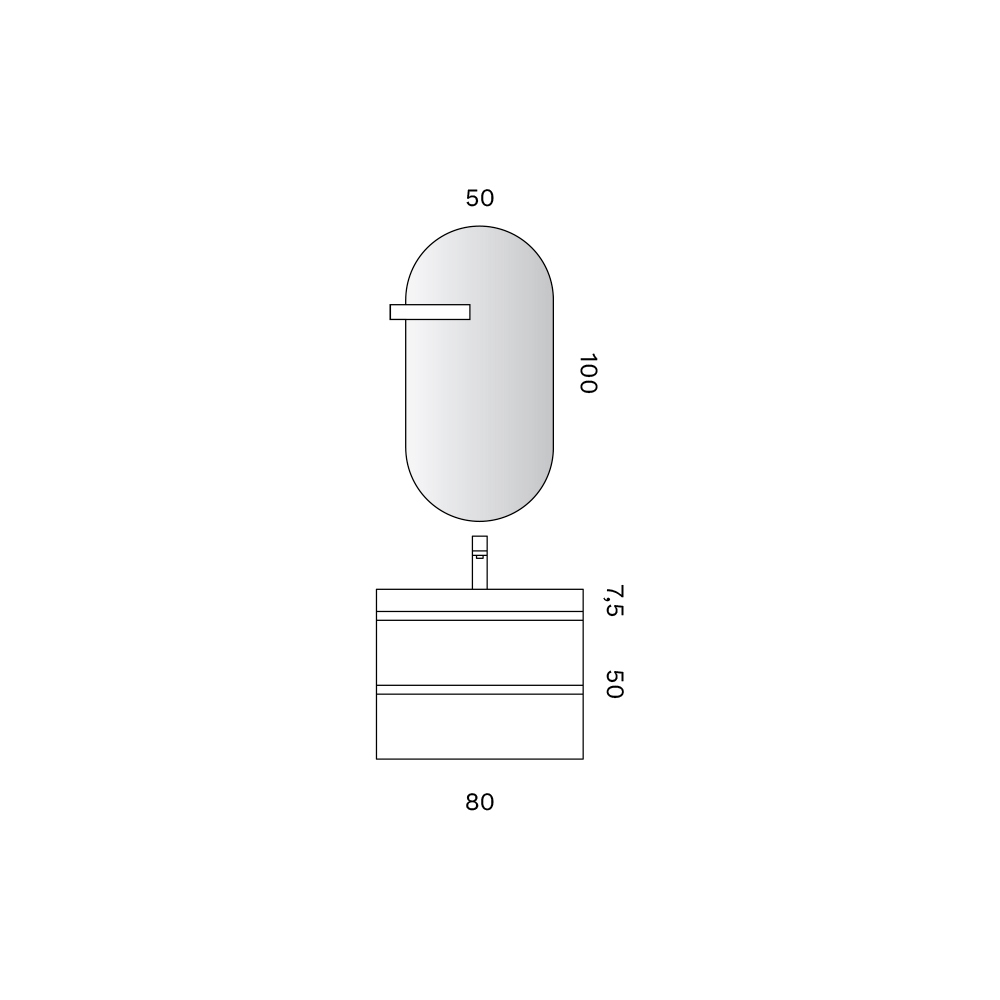 • Spiegel: Länge 50 cm x Tiefe 2,5 cm x Höhe 100 cm