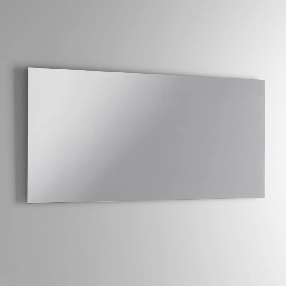Der große rechteckige Spiegel vergrößert den Raum optisch und wird zum Blickfang an der Waschbeckenwand, während die LED-Lampe in Chromoptik für eine funktionale und elegante Beleuchtung sorgt.