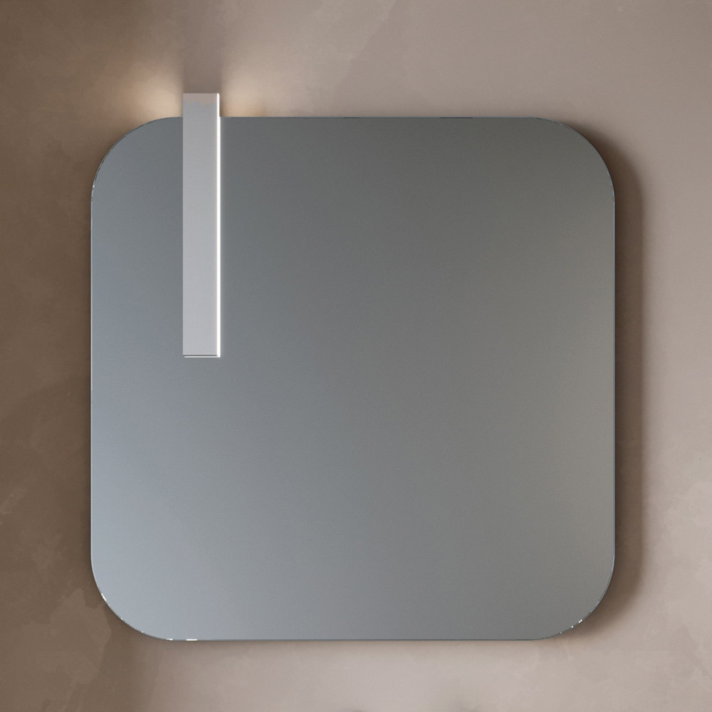 Der formschöne Spiegel verleiht der Komposition Charakter und Persönlichkeit, während die LED-Lampe mit Chromfinish für eine elegante und funktionale Beleuchtung sorgt, die ideal für den Waschbeckenbereich geeignet ist.