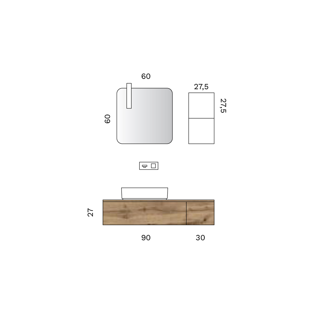• Spiegel: Länge 60 cm x Höhe 60 cm