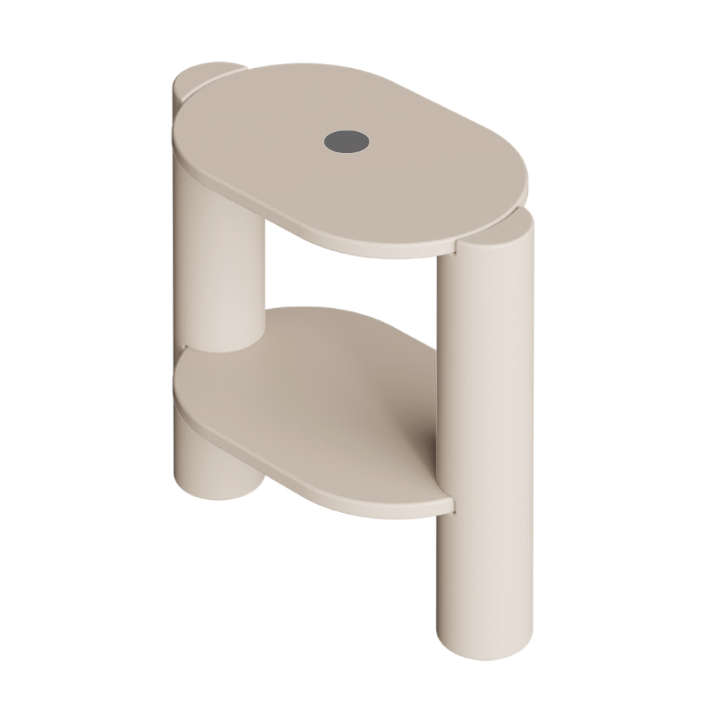Diese Keramikstruktur zeichnet sich durch ihr originelles Design mit zylindrischen Säulen und integrierten Regalen aus und schafft eine perfekte Balance zwischen Ästhetik und Funktionalität.