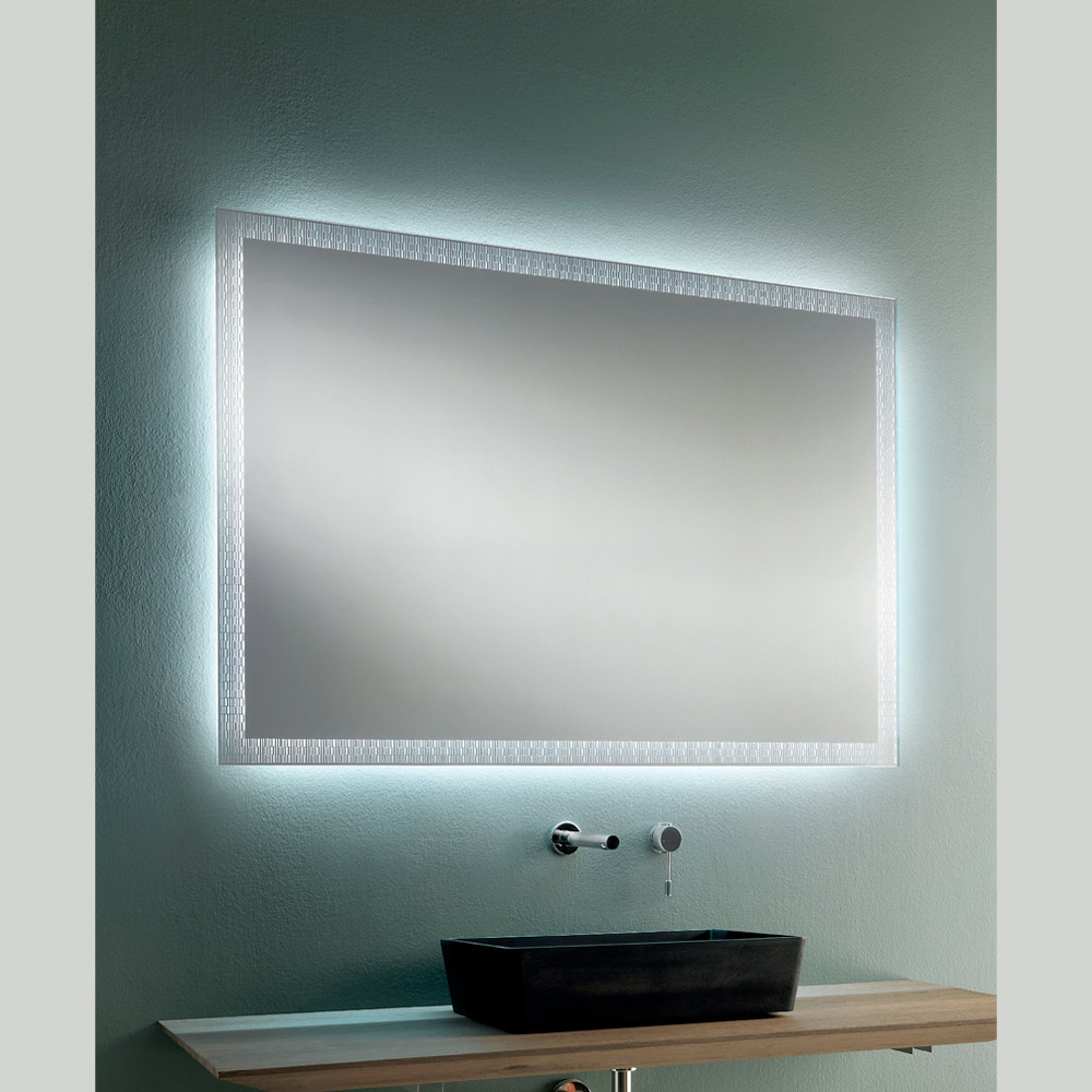 Spiegel mit lasergravierter Dekoration und LED-Hintergrundbeleuchtung, hergestellt in Italien