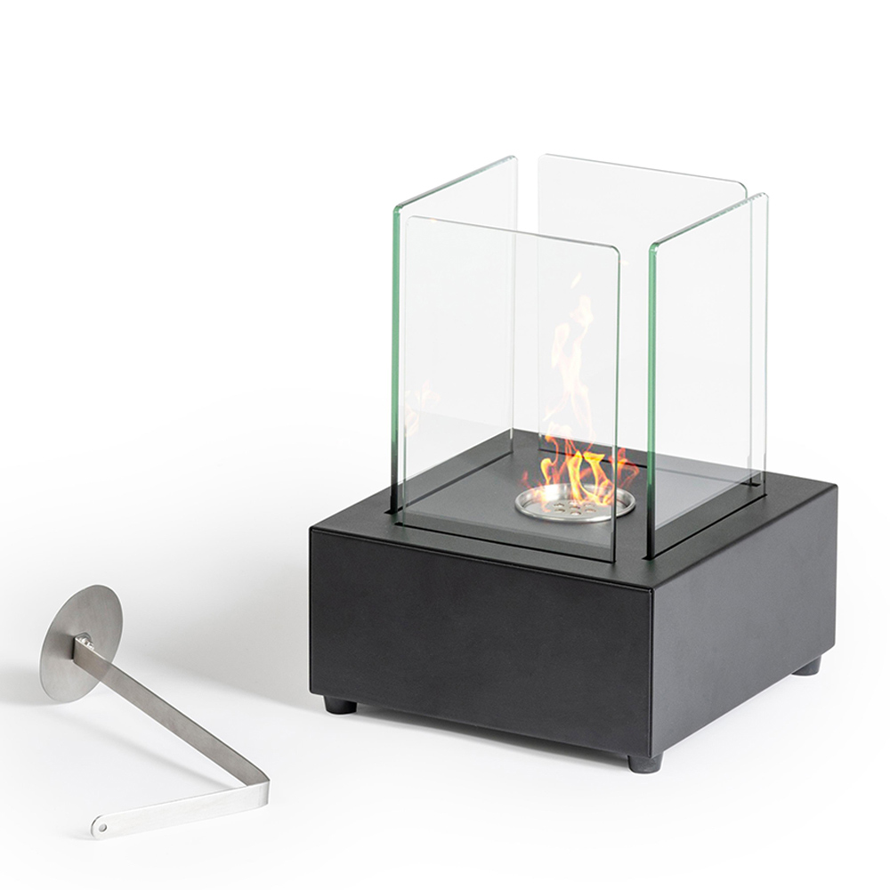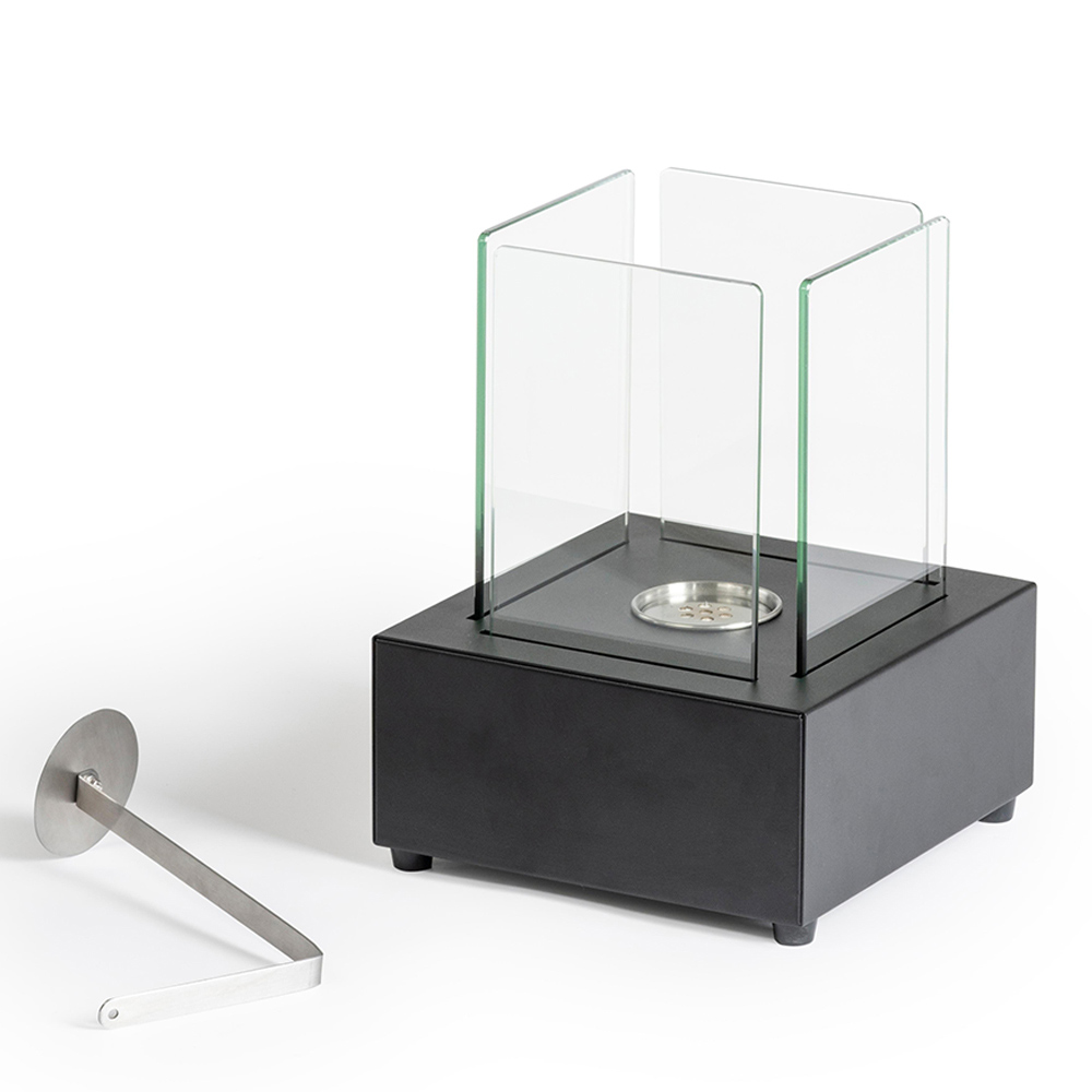 Bio-Tischkamin aus gehärtetem Glas mit Sockel aus schwarzem Metall - Coriano