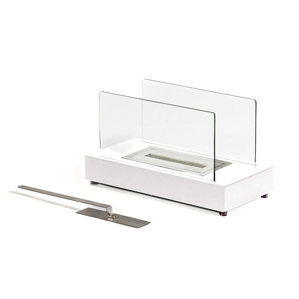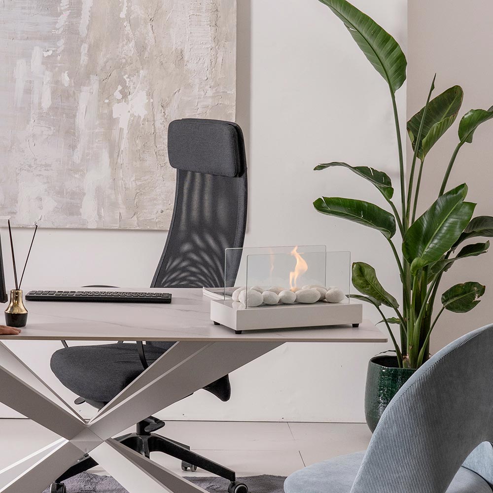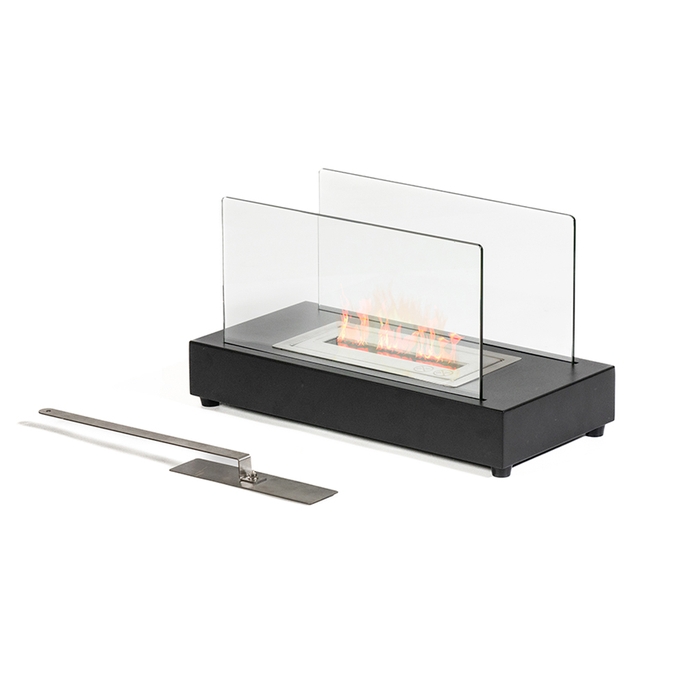 Tisch-Biokamin aus gehärtetem Glas und Metall
