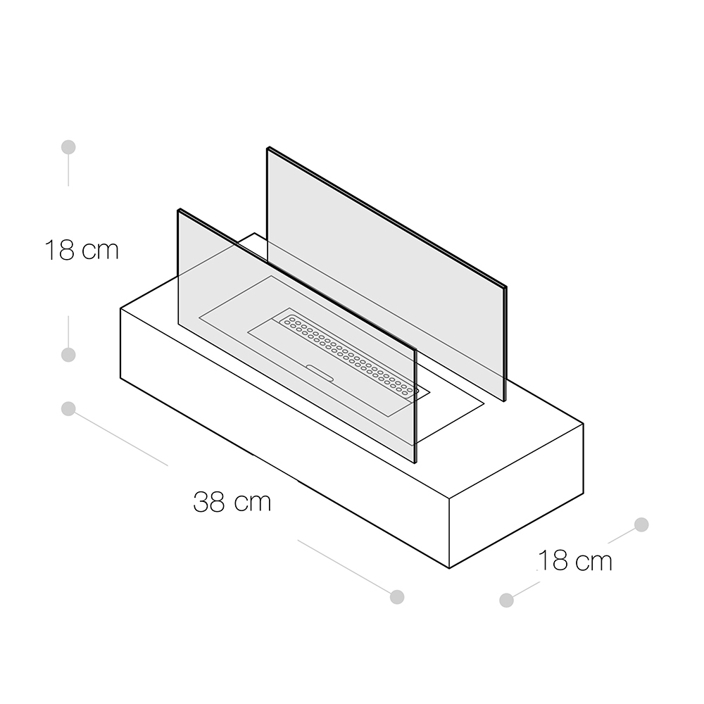 • Gesamtmaße: 38 Länge x 18 Tiefe x 18 Höhe cm