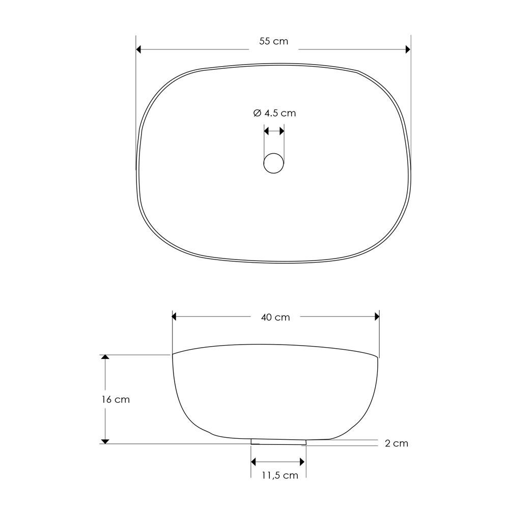 - Waschbecken - Durchmesser 55 x P 40 x H 16 cm;