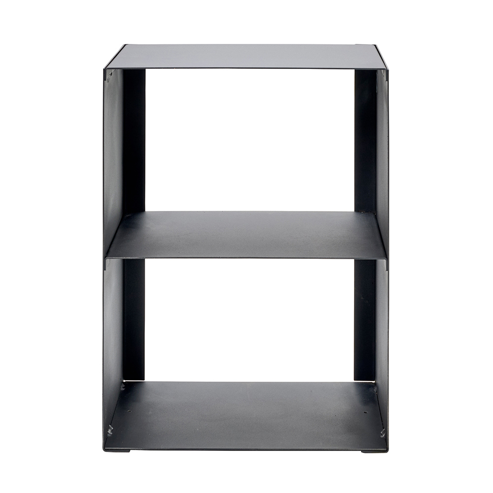 Die Struktur ist in zwei Fächer unterteilt, die es Ihnen ermöglichen, das Holz von anderen Brennmaterialien wie Zweigen oder Tannenzapfen zu trennen, was eine effektive und ästhetisch ansprechende Organisation gewährleistet. Das kubische Design und die minimalistische Verarbeitung ermöglichen es diesem Stück, sich perfekt in jede Umgebung einzufügen, von einem rustikalen Zuhause bis hin zu einem moderneren Raum.