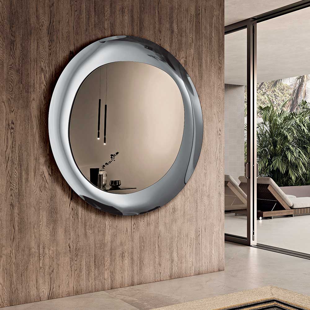 Ein eleganter, in Italien gefertigter Designer-Wandspiegel, der Räume wie Eingangsbereich , Wohnzimmer oder Schlafzimmer aufwertet. Sein raffiniertes Design vereint sanfte Formen und edle Materialien und macht den Spiegel zu einem stilvollen Einrichtungsgegenstand mit starkem dekorativem Charakter.