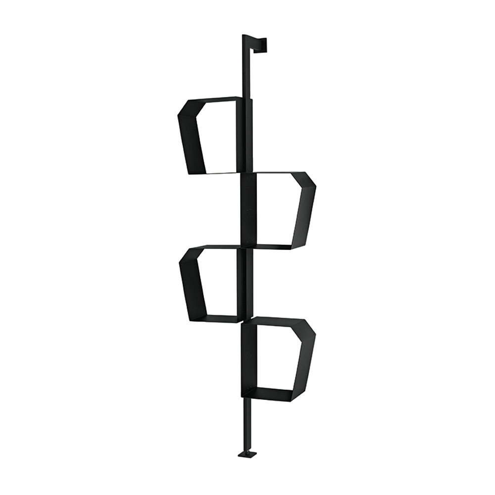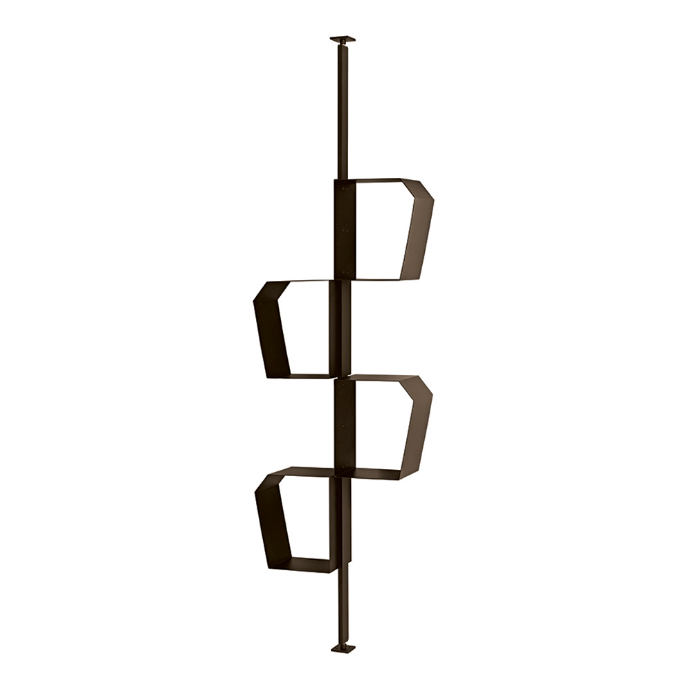 Dank seiner vielseitigen Konfigurationsmöglichkeiten lässt sich das Bücherregal sowohl an der Wand als auch an der Decke befestigen. In der Deckenversion kann es zudem als Raumteiler eingesetzt werden und eignet sich perfekt zur Abgrenzung von Räumen bei gleichzeitiger Wahrung optischer Leichtigkeit.