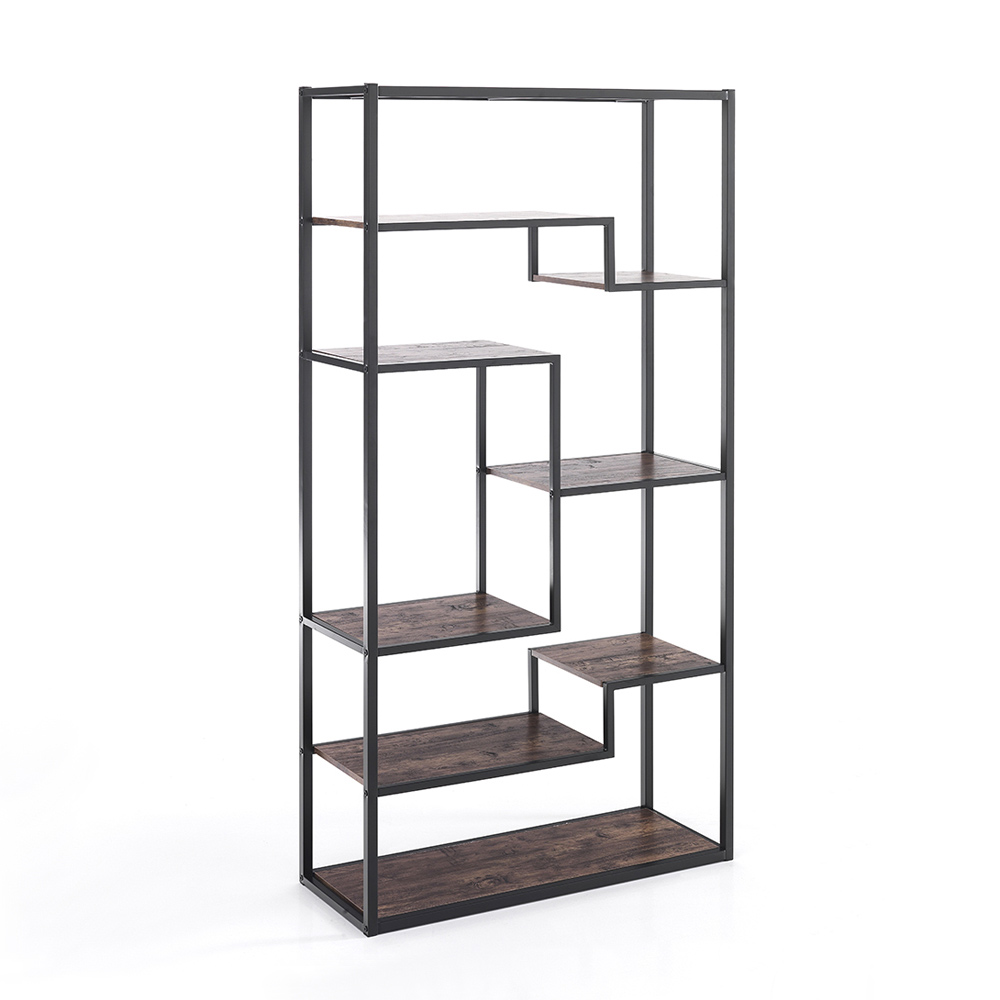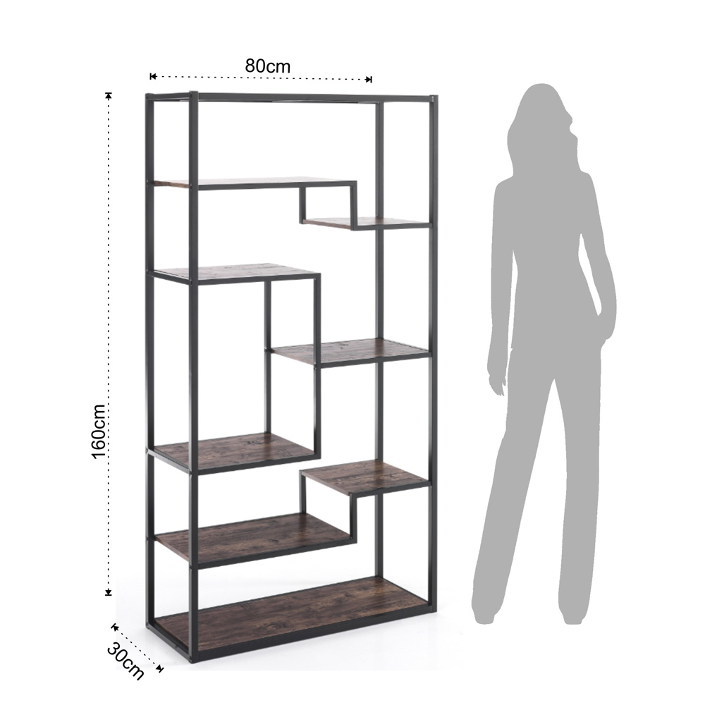 Bücherregal aus mattschwarz lackiertem Metall und Regale aus Holzpartikeln, komplett mit Melaminbeschichtung in Altholzoptik. Dieses Möbelstück mit einfachen und linearen Oberflächen eignet sich perfekt zur Vervollständigung der Einrichtung jeder Alltags- und Objektumgebung. Es handelt sich um einen Artikel, der es Ihnen ermöglicht , Ihre Bücher und Gegenstände ordentlich aufzubewahren und so auszustellen, dass Sie sie immer griffbereit, aber in Ordnung haben. Dank der zur Herstellung verwendeten Materialien ist höchste Qualität gewährleistet.