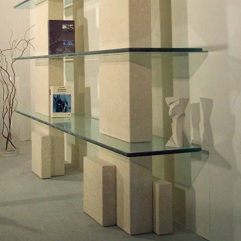 Bücherregal aus Stein und Kristall in modernem Design Poplia Made in Italy Bücherregal aus Stein und Kristall Libreria modulare Made in Italy in pietra e cristallo. Das Gestell besteht aus Elementen, die 35 cm hoch sind und 4 Regalfächer aus Kristall haben. Eine Sicherheitstruktur garantiert die Stabilität von dem Gestell. Der Stein aus Vicenza besteht vorwiegend aus Calciumcarbonat, das sich aus Lagerungen von Meeresorganismen bildet.