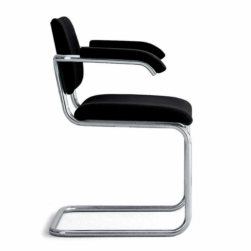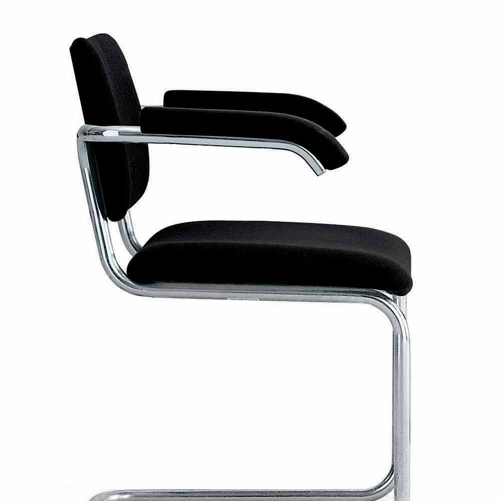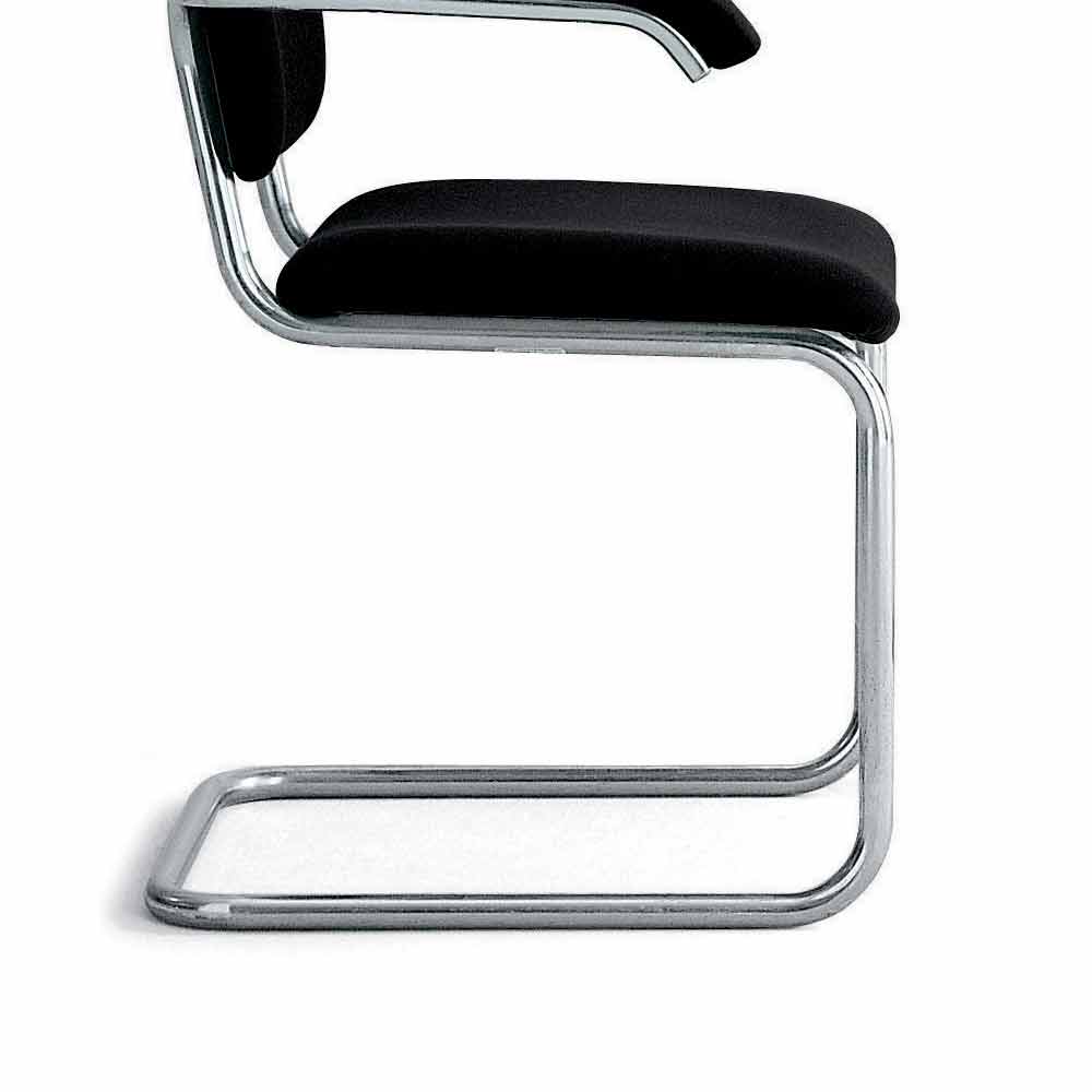 Bürostuhl mit Kufengestell aus verchromtem Stahl made in Italy.