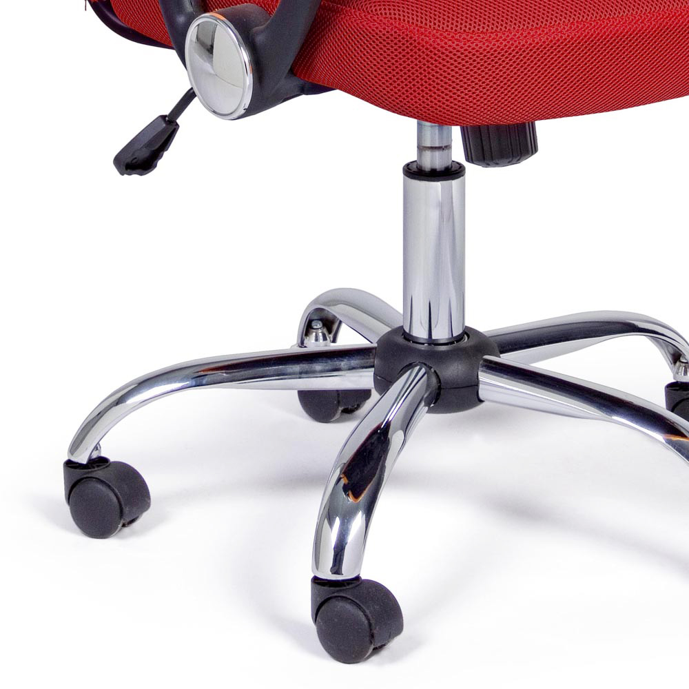 Dieser Bürostuhl ist mit einem soliden Chromstahlgestell und Nylonrädern ausgestattet.