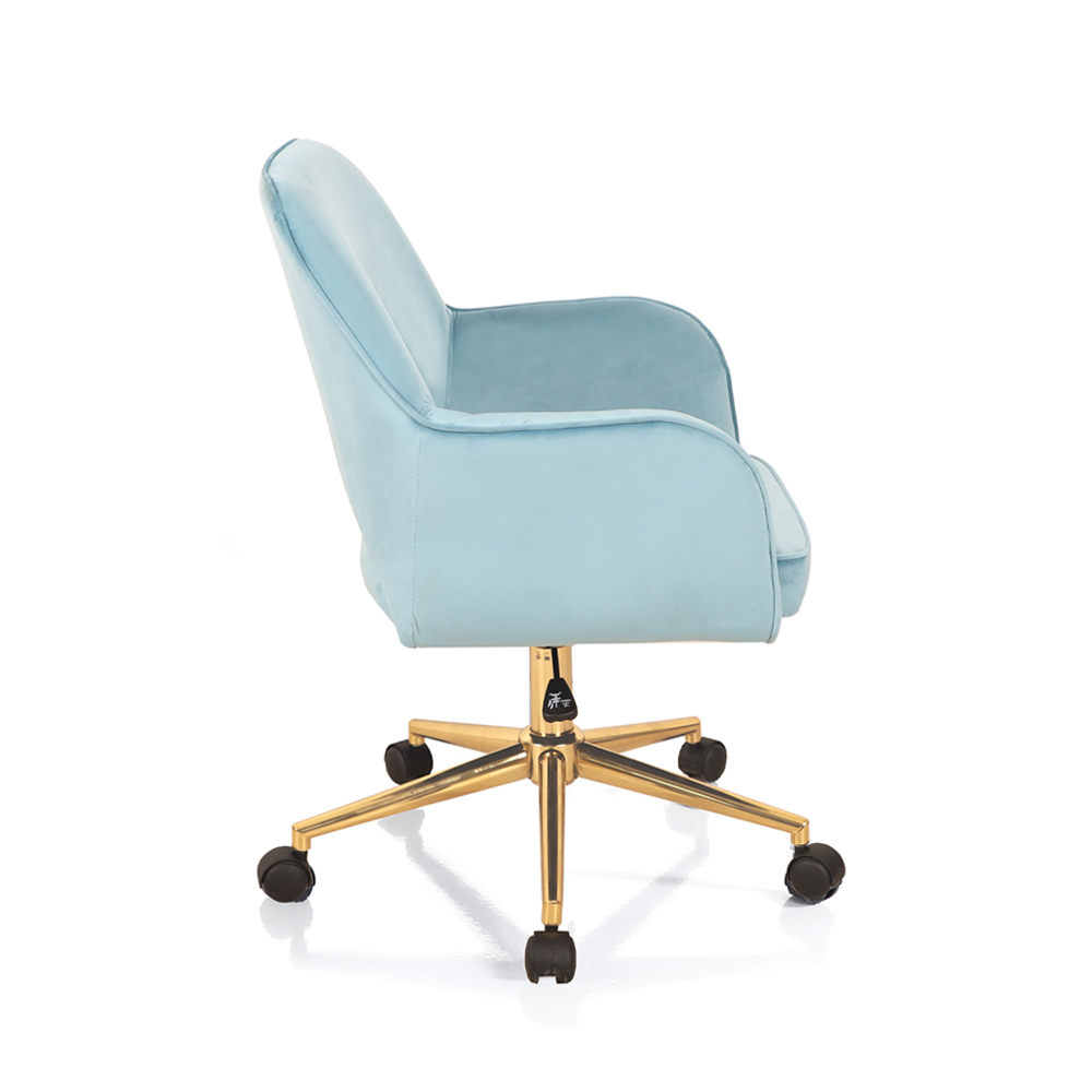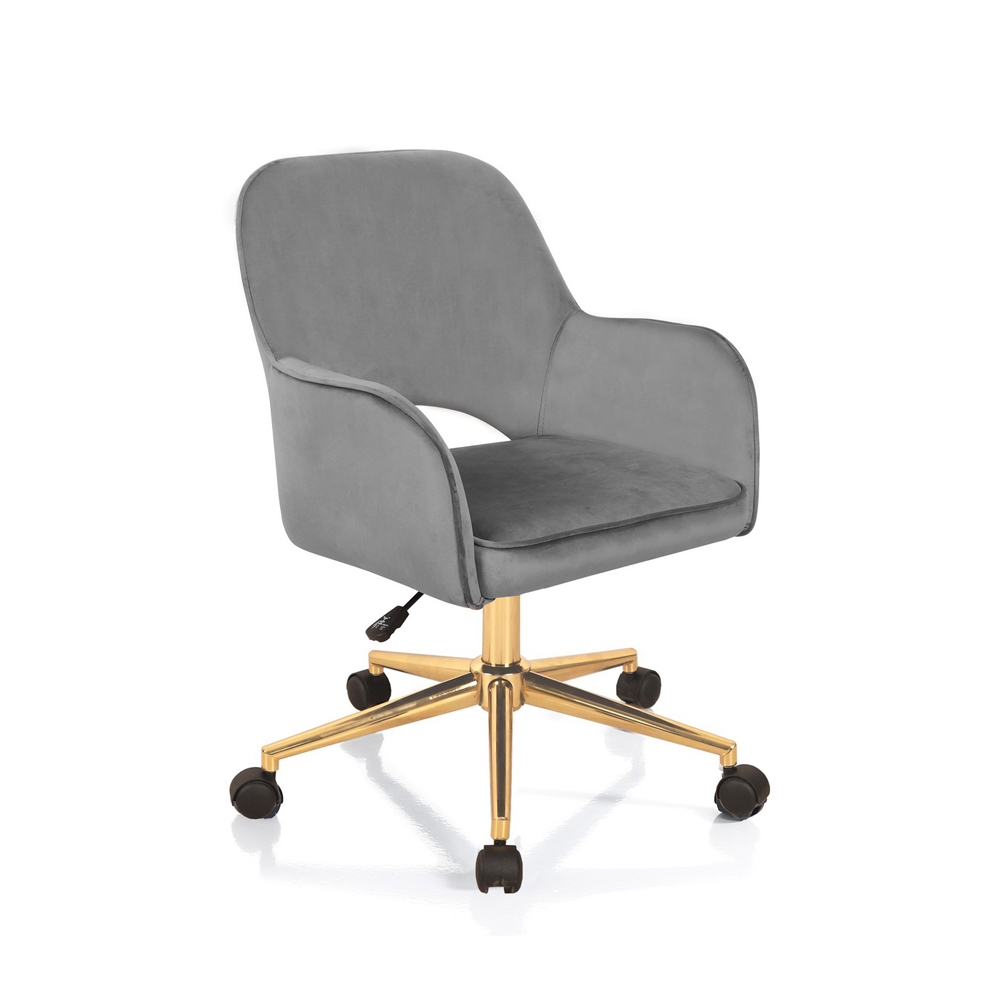 Sessel mit nicht abnehmbarer, gepolsterter Sitzfläche, bezogen mit weichem Mikrofaserstoff in Samtoptik , Sternfuß aus goldglänzendem lackiertem Metall , höhenverstellbarer Gasfeder und drehbaren Rädern, komplett . Dieser Artikel garantiert einen weichen und umhüllenden Sitz , einfache Bewegung dank der Räder und die gesamte Qualität von. Es eignet sich perfekt für den Einsatz in Arbeitsbüros , aber auch auf dem heimischen Schreibtisch und verleiht dem Raum eine professionelle und moderne Atmosphäre.
