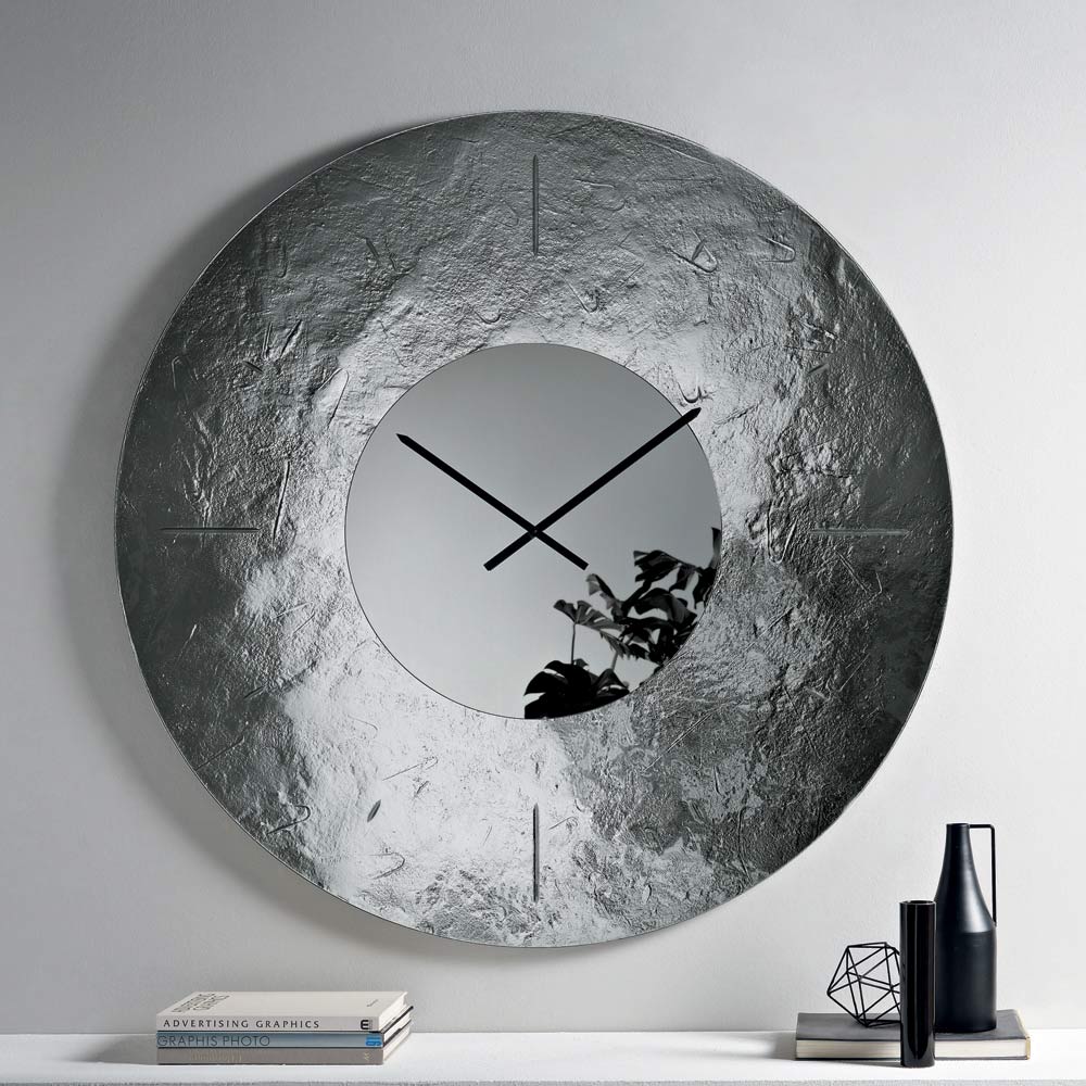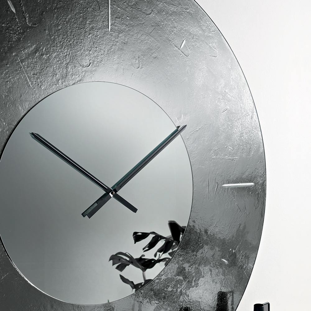 Cinzia – Wanduhr aus gehämmertem, versilbertem Fusingglas, hergestellt in Italien