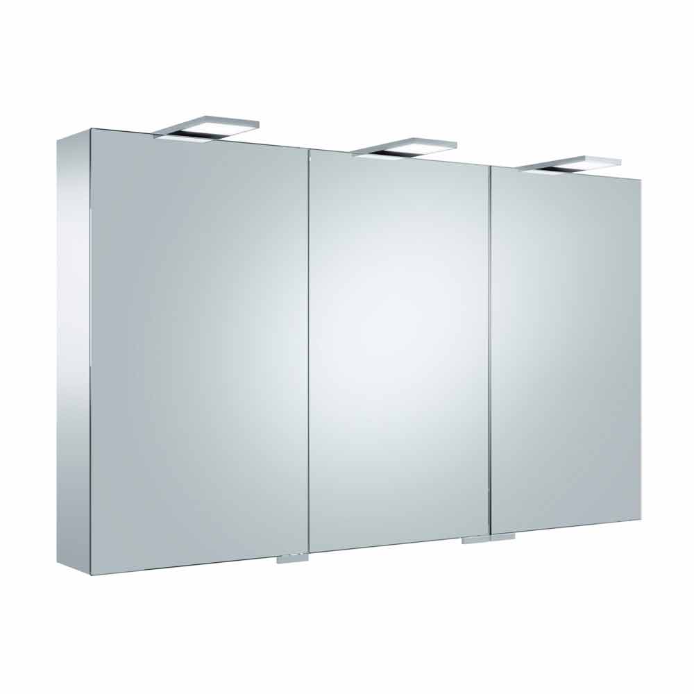 Containerspiegel mit 3 verspiegelten Flügeltüren (auch innen) und Seitenspiegeln mit LED-Beleuchtung.