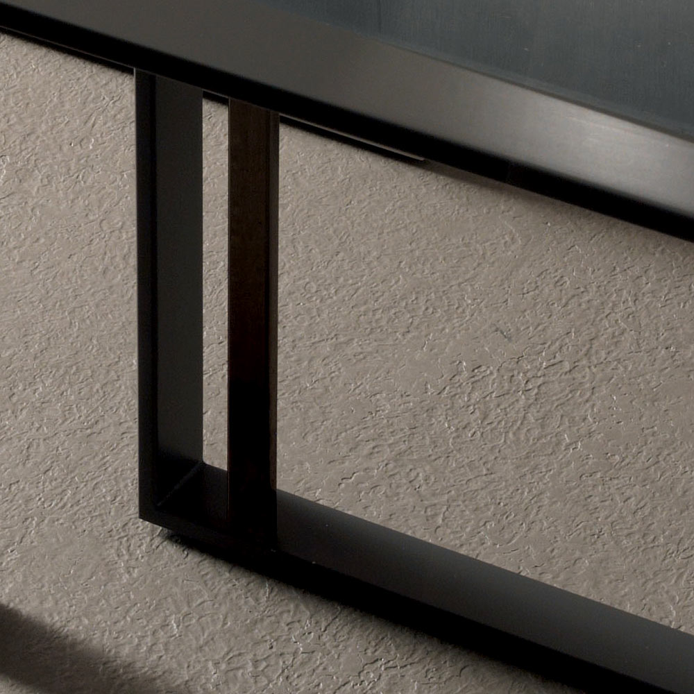 Dieser Couchtisch imgeometrischen Design verfügt über einen pulverbeschichteten Metallfußund eine geätzte Glasplatte. Die Besonderheit der Ergänzung wird durch die reduzierte Dicke und durch die senkrechten Linien gegeben, die einen modernen, interessanten und vielseitigen Charakter verleihen.