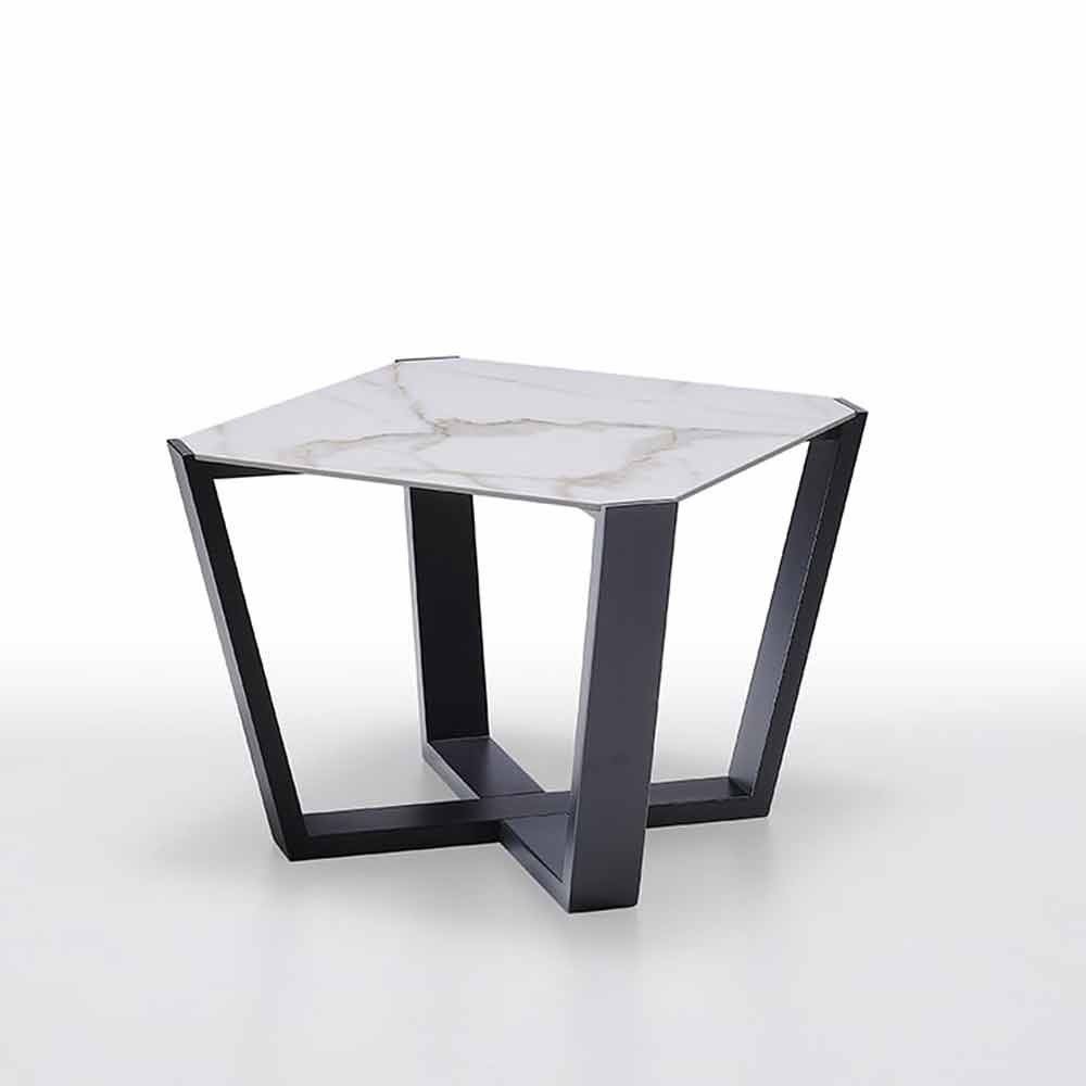 Moderner Couchtisch aus Buchenholz mit Steinzeugplatte mit Marmoreffekt, hochwertige Made in Italy.