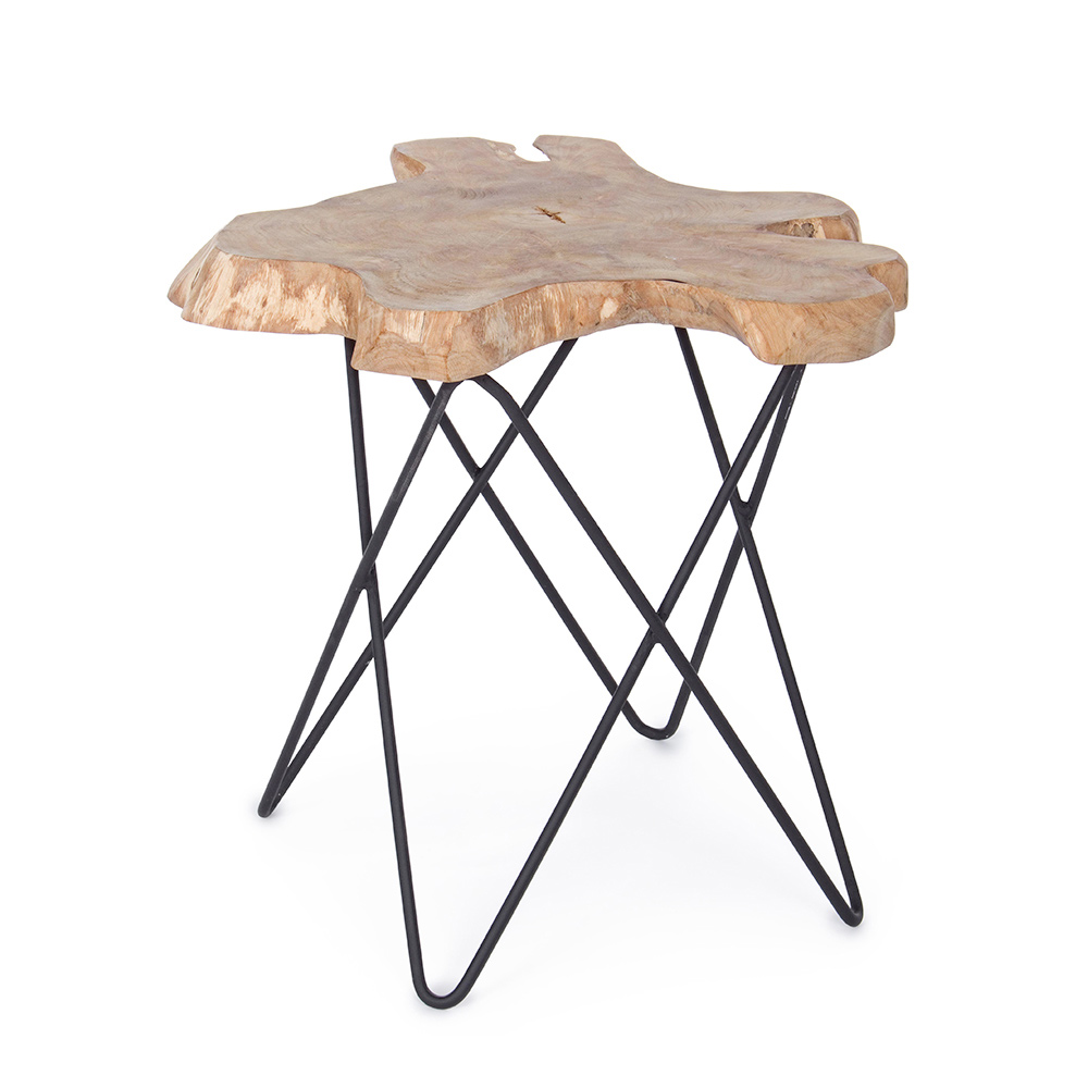 Dieser Wohnzimmer-Couchtisch besteht aus einem Bodenaus Teakholzwurzeln mit einem natürlichen FinishUndBeine aus epoxidpulverbeschichtetem Stahl. Da es sich um ein natürliches Material handelt , sind die durch das Holz erzeugten Formen und Größen nur indikativ, daher unterscheiden sich alle Produkte voneinander. Design im Industriestil , geeignet für minimale und naturalistische Kontexte.