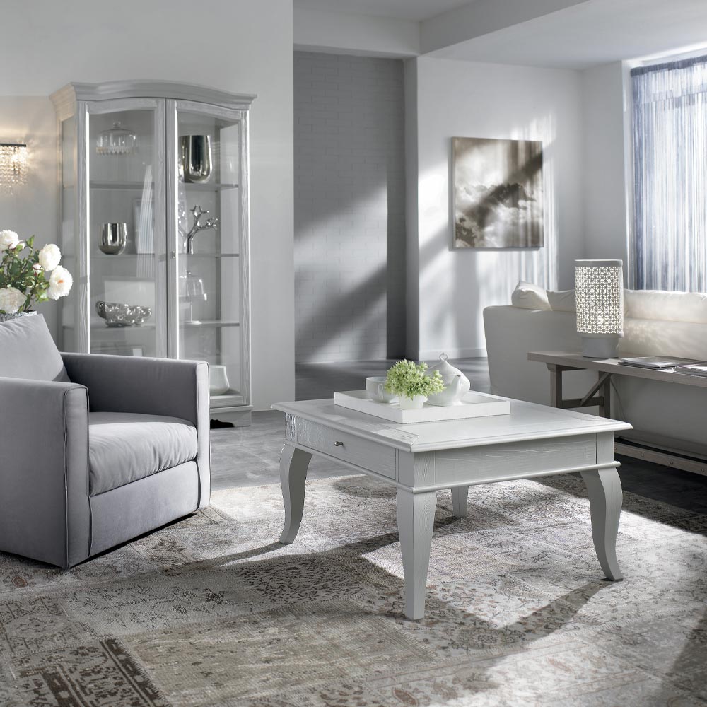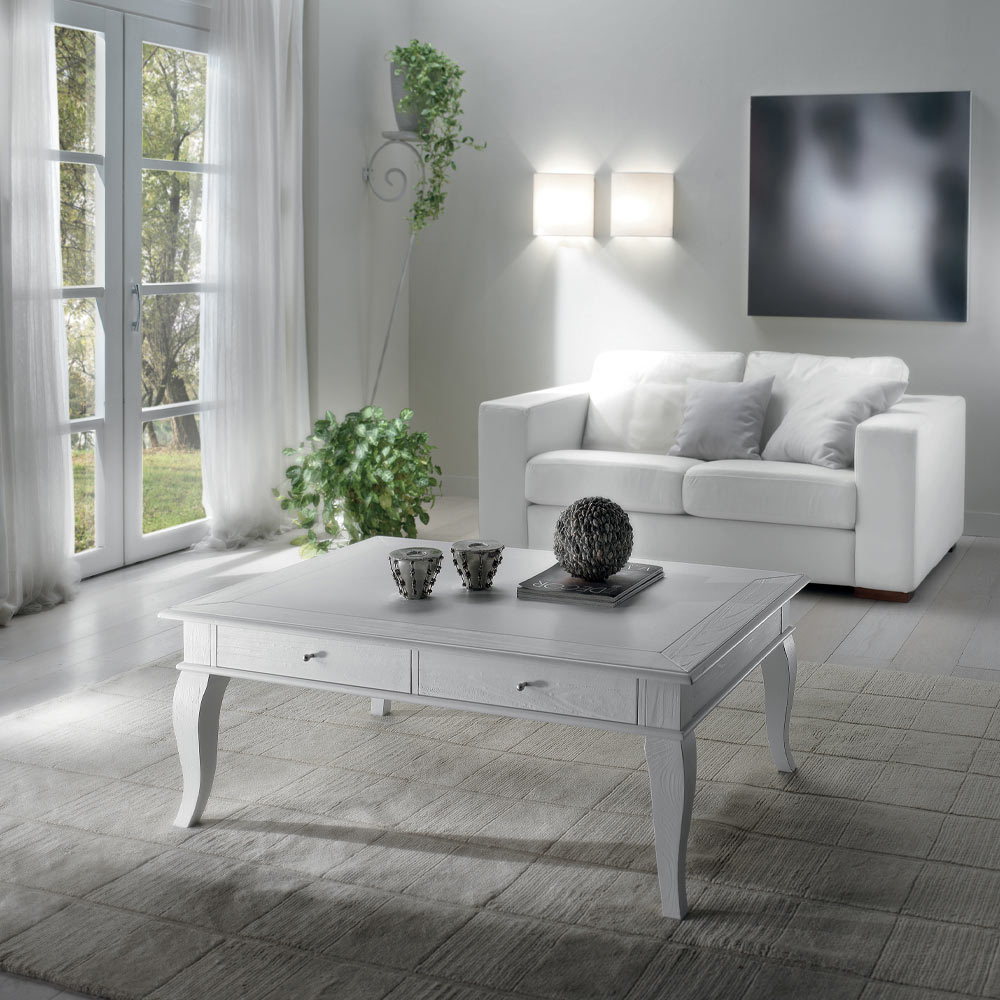 Couchtisch für den Innenbereich mit massiven Teilen aus Ayous und Linde , Spanplattenplatten mit Toulipier-/Tanganika-/Pappelfurnier Komplett in Italien hergestellt.